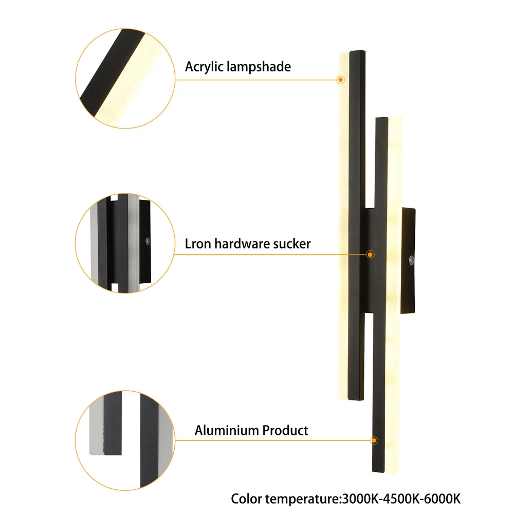 Installation Area: Indoor Color Temperature: 3000-6500K Power Source: Corded-electric Overall Length: 48cm/18.89inch UPC: Does not apply Features: Dimmable, Wall Mounted Lighting Technology: LED Sensor Type: Does not apply Light Color: Warm, Neutral, White Light Type: Wall Lamp Light Fixture Form: Wall Sconce Lumens: 800Lumen Finish: Does not apply Lighting Method: Downlight Style: Modern Light Source: 10W LED Chip MPN: Does not apply Brand: Unbranded Room: Living Room, Bedroom Voltage: 90-260V Material: Metal, Aluminum, PVC Single Lamp Length: 40cm/15.74inch Mounting: Wall-mounted gtin13: Does not apply LED String/Strip Type: Does not apply Character Family: Does not apply Department: Adults Color: Black, Clear Illumination Area: 3-5m²/32.3-53.8ft²