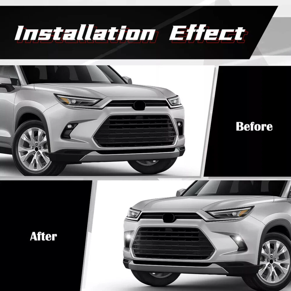 product Shipping Payment Warranty and Guarantee Other Policies Item Description Item Specifics Brand Unbranded Model Number 932455 Color Black Quantity 2pcs Type Turn Lights Type Front Bumper Fog Light Assembly ( LED Type ) Material Made of high quality ABS plastic material Item Feature MATERIAL--100% brand new. Strict factory QC test, high quality guarantee. APPLICATION--Provide a premium and stylish decor for your car, cover existing scratches and decorate your car. FEATURES--Made of use superb surface treatment technology for protection, anti-corrosion, fading protection and years of trouble-free use. DESIGN--Perfectly match with your original car. It can bring luxurious decoration upgrades to your car. Item F itment This Product Is Compatible For The Following Vehicle: 2024-2025 Toyota GRAND HIGHLANDER COMPATIBLE FOR XLE, LIMITED, PLATINUM, HYBRID Attention: Will Not Fit Regular Highlander Model. You are welcome to send us a picture of your vehicle to verify fitment if needed. Package Include 1 Set of fog light assemblys( 2Pcs/Set) NOTE Communication is the best way to solve the problem. If you have any problems after purchasing, please contact us in time, before opening return or case. Due to the different display and different light, the picture may not reflect the actual color of the item. Item Pictures More Shipping 1.We ship to worldwide,except Hong Kong,Taiwan,Macao,China,Guemsey and we do not ship to APO/FPO, etc. 2.Item will be shipped within 3 business day on payment received. 3.Items are shipped from China using Airmail,reach most of countries within 10-20 business days. 4.sDelivery time depends on destination and other factors,it may takes up to 20 business days. Payment 1.We accept Paypal only. 2.All major credit cards are accepted through secure payment processor PayPal. 3.Payment must be received with 7 days of auction closing 4.If you have bought multiple items from us,you can send us one payment for all the items instead of paying for them individually. When you click the Pay Now button,eBay will automatically determine if there are other items you have won of purchased from us and will combine them for your review. Warranty and Guarantee 1.One year warranty!30 days money back!Buy with confidence! 2.If you are not satisfied when you receive your item,please return it within 30 days for a replacement or money back.Please contact us before you return the item. 3.If item is defective in 3 months,we will send you a replacement without extra charger,or offer refund after we receive the defective item. 4.If item is defective after 3 months,you can still send it back to us.We will send you a new one after after receiving the defective item,but you have to pay the extra shipping fee. Other Policies 1.We are not responsible for any custom duty or import tax. 2.We will leave Positive Feedback after receiving the payment.Please contact us if you are not satisfied with the item after receiving it. 3.All emails will be answered within 1 business day.If you do not receive our reply,please kindly re-sent your email and we will reply you as soon as possible. 4.Serious Buyer Only!Please place bid only if you agree with all the terms.