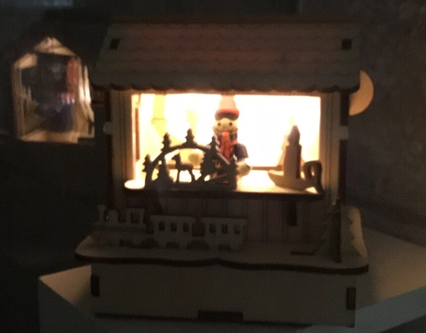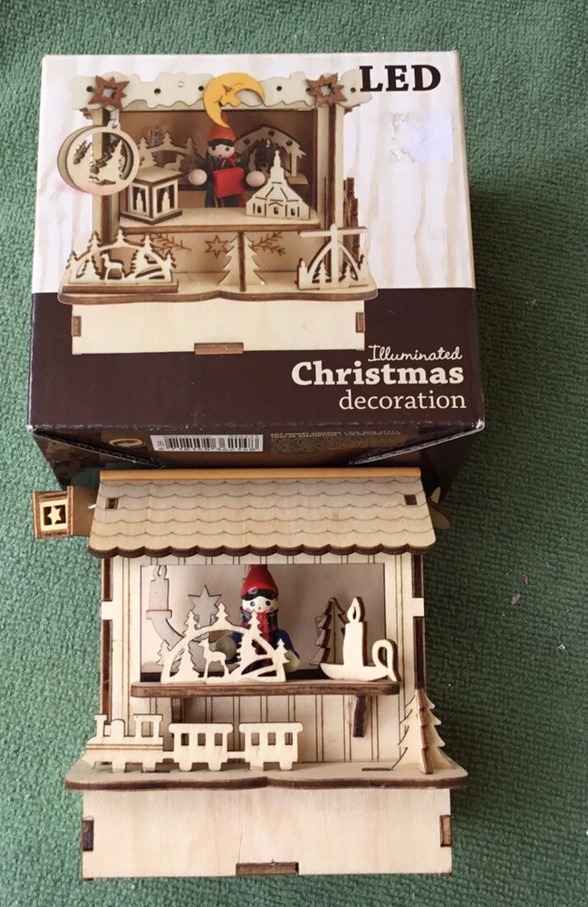 LED Wooden Cut Out Christmas Tabletop Decoration w/Christmas Shop - NEW