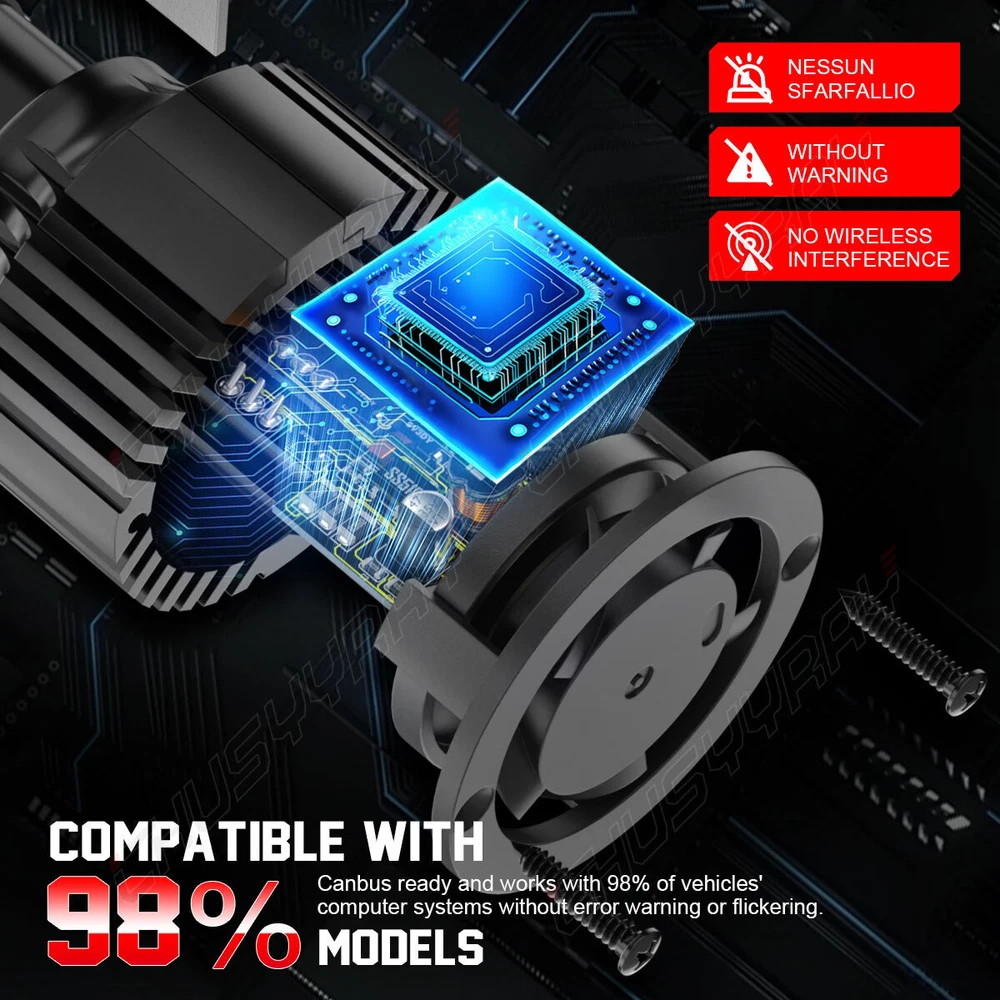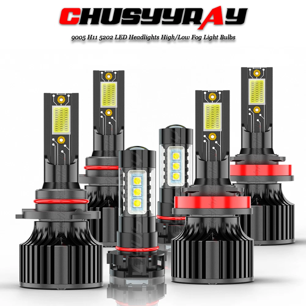 Pls contact us first before you want to return it,thank you! Fitment system may not be 100% accurate, if you are not sure which bulb size you need, please check vehicle manual or stock bulb model. Specifications: --Plug Type: 9005 + H11+H16,Hi/Lo Beam Fog Light --LED Quantity(each bulb): 2pcs --Luminous Flux: 12000lm/set(6000lm/bulb) --Operating Voltage: DC 9-32V(fit 12V,24V vehicles) --Color Temperature: 6000K Pure White --IP67 rated water and dust seal,over 50000hrs lifetime --Material: Aviation 6063 aluminum profile --Operating Temperature: -40-80 degree Celsius --Usage: Headlight Feature: --(6pcs/set)9005+H11+5202 Hi-Lo Beam LED headlight Fog Light conversion kit --Engineering beam pattern design throw more light on road evenly at appropriate angle without foggy light --Xenon white light reflect road paint/signs better to show clearer road situation during night driving --270 degree low beam angle with cut-off line,will not dazzle oncoming traffic --All-in-one heat conduction+high speed mute fan system keep the light bulb in appropriate working temperature --Built-in constant current CPU, instant full brightness without start-up relay --It can directly replace the traditional tungsten bulb of the original car; --The LED has high luminous purity, no need for lampshade filtering, and the light wavelength error is within 5 nanometers --There is no delay when the LED lights up, while the traditional tungsten bulb has a delay of 0.3 seconds. --LED has low power consumption. When it reaches the same brightness of traditional bulbs, it consumes only 6% of traditional bulbs, and it also saves electricity and fuel! --It has a long life, its filament-free structure does not generate heat, and it can be used for more than 6 years under normal conditions --LED car lights can make the vehicle control circuit not easy to oxidize, with a maximum load current of 0.1A. Two-way heat dissipation channel: 1.All-in-one aluminum profile as heat conduction system, 360 degree heat radiating 2.High speed mute fan(12000R/Min),high Air flow for faster cooling rate Note: --No need to modify the circuit, directly replace the original traditional glass bulb, pay attention to the high temperature of the original bulb to prevent burns! --When installing, refer to the product dimensions and pay attention to the size of the installation location. Carefully press and do not squeeze the LED chip to avoid damage. The LED has positive and negative polarity, if it is not bright, turn the direction and reinstall; Package Included: 2 x 9005 LED Headlight High Beam Bulbs 2 x H11 LED Headlight Low Beam Bulbs 2 x 5202/H16 LED Fog Light bulbs New and old packaging will be shipped randomly Install Caution: 1. As a safety precaution, make sure that the car has had time to cool down properly before starting the installation process. 2. Put the vehicle into park or make sure it is securely in gear. 3. Be sure to turn off the ignition and remove the key. 4. Be careful to avoid burns, especially when turning on or off the vehicles lighting. 5. Be careful to avoid crushing or cutting the bulbs. Also make sure to not touch the bulbs with your fingers, as this will cause blotting. 6. Fully examine the connection of the contact points, ports and the wires as faulty connections can cause lighting problems. 7. Make certain that the end of the bulb does not come in contact with the interior light shield of the headlight when adjusting the bulb.