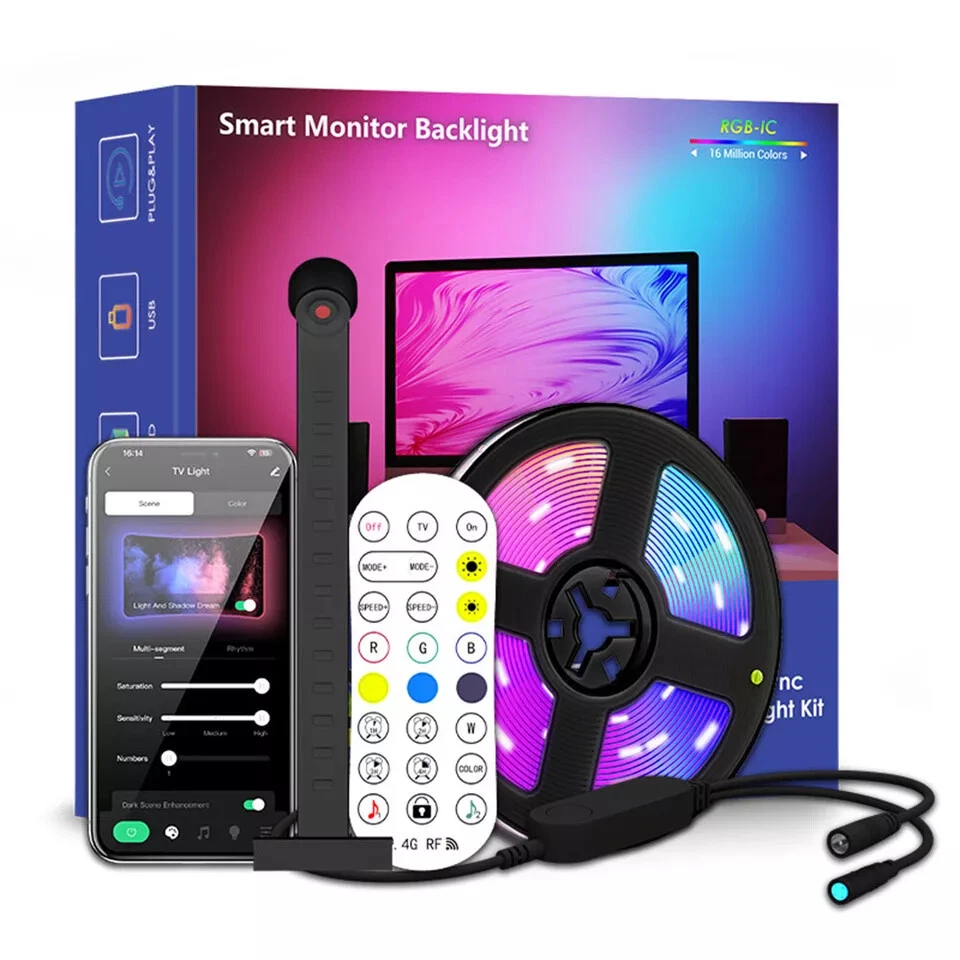 Features: -Equipped with the latest smart camera, it can synchronize the colors on the screen and react to sound and light, providing amazing lighting effects to create a more immersive and enjoyable viewing experience. (Note: the camera cannot be used to take pictures.) -With the Bluetooth ''uLamp'' app, you can effortlessly adjust brightness, colour, set time, and even DIY multiple scenes to suit your mood, and it also comes with a remote control. -It can display 16 million colors, and the soft lighting protects your eyes and immerses you in a unique atmosphere. Welcome to our store TV LED Backlight with Camera AR Sensor for 55-60" PC Music Sync LED Strip Lights Features: -Equipped with the latest smart camera, it can synchronize the colors on the screen and react to sound and light, providing amazing lighting effects to create a more immersive and enjoyable viewing experience. (Note: the camera cannot be used to take pictures.) -With the Bluetooth ''uLamp'' app, you can effortlessly adjust brightness, colour, set time, and even DIY multiple scenes to suit your mood, and it also comes with a remote control. -It can display 16 million colors, and the soft lighting protects your eyes and immerses you in a unique atmosphere. -It provides 12 scene modes, 6 music rhythm modes (rock, jazz, classical, scroll, energy, spectrum) and DIY scene mode to customize it according to your preferences and create the perfect atmosphere for any occasion. -It combines functionality, beauty and entertainment, making it a thoughtful gift for movie lovers, game lovers, friends, family or yourself. -Installation is quick and easy, 3.8m/12.84ft long, suitable for 55-60" TV, equipped with strong adhesive, just install the camera in the center of the top of the TV, and then install the LED light strip firmly on the back of the TV. Before installation, please make sure the back and top of the TV are dust-free so that the camera and light strip are more stable and not easy to fall off. Specification: Model: DX23014 Lamp body material: FPC LED type: 5050RGB LED quantity: 114 Input voltage/frequency: AC 100-240V/50-60Hz Input voltage/current: 12V/1.5A max Power: max 18W Lighting angle: 120° Control method: 24-key 2.4G wireless remote control, mobile phone Bluetooth app Size: 3800*10*1.8mm Package Included: 1x Light strip (3.8m) 1x Color sensor 1x Controller 1x Remote control 1x Instruction manual 1x US power adapter Item Specifics Amperage 12V/1.5A max Brand Bedee Model DX23014 Colour Multicoloured Control Style App Control Remote Control Cord Colour Black Department Adults Features Colour-Changing Dimmable Easy Installation Low Voltage RGB With Light With Remote Control Installation Area Indoor LED Chip Code 5050RGB Lighting Technology LED Material FPC Occasion Multipurpose Output Voltage AC 100-240V/50-60Hz Power Consumption max 18W Power Source USB Room Bedroom Dining Room Living Room Lounge Playroom Style Modern Theme Movies & Music Art Celebrity Halloween Holiday Holidays & Christmas Home & Garden TV Type Light Strip Voltage 12 V Lighting angle 120° Compatible Model TV background light Manufacturer Warranty 5 Years Compatible Brand Suitable for 55-60 inch TV Payment We accept all forms of payment . Payment is expected within 2 days from the end of the auction. We send all the items are based on your paypal address. Therefore, please make sure your paypal address is valid. Shipping Handling time: 1 business day (Orders are not processed on weekends & holidays) Tracking information will be sent once item is shipped. Local pick-up is unavailable at the moment. For international shipping and shipping to Guam, Hawaii and Alaska, Please contact us before placing the order. Item is shipped to ebay address. Leaving correct address can minimize delay. Returns If you are satisfied with the purchase and our total service, your comment is very important in our business success. Please take a minute to leave us a positive feedback with an overall Detailed Selling Rating (DSR) of 5. Our eBay account setup auto feedback, so eBay system gives you automatically Positive feedback back after your positive feedback left. If you plan to give us a neutral/negative feedback Or open ebay/paypal case, please write to us immediately so that we can do our best to resolve your problem. Contact Us All messages will be answered within 24 office hours. Please contact us either by clicking "contact seller" in the "purchase history" section or simply click "ask a question" at the bottom of this page. If you are unsatisfied with our item or service, please contact us before leaving any feedback. We are committed to resolve all issues in a friendly and satisfactory manner. We always reply to messages within 2 business days (off-duty at weekend). If you do not get a response from us, then please check your junk or spam mailbox. Location Los Angeles,United States Please always talk to us via ebay Message. We appreciate your business and look forward to growing our e-Bay sales with satisfied customers. Welcome to our store DESCRIPTION PAYMENT SHIPPING RETURN POLICY CONTACT US TV LED Backlight with Camera AR Sensor for 55-60" PC Music Sync LED Strip Lights Features: -Equipped with the latest smart camera, it can synchronize the colors on the screen and react to sound and light, providing amazing lighting effects to create a more immersive and enjoyable viewing experience. (Note: the camera cannot be used to take pictures.) -With the Bluetooth ''uLamp'' app, you can effortlessly adjust brightness, colour, set time, and even DIY multiple scenes to suit your mood, and it also comes with a remote control. -It can display 16 million colors, and the soft lighting protects your eyes and immerses you in a unique atmosphere. -It provides 12 scene modes, 6 music rhythm modes (rock, jazz, classical, scroll, energy, spectrum) and DIY scene mode to customize it according to your preferences and create the perfect atmosphere for any occasion. -It combines functi