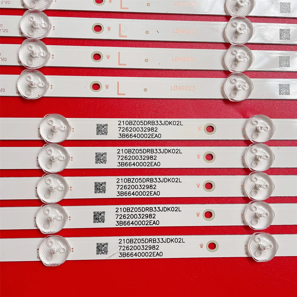100% working condition.We test the led strip before shipment ,so you can buy with confidence. Many TV models use various different sets of LED strips. Please match the strips shown in the photo to the originals in your TV before ordering. Product information: Condition: Brand NEW Size (Length): 992mm R+L Number of LED beads: R+L=9LED(3V) per strip Package include: 10pcs/set (5*R 5*L) LED strip models: 210BZ05DRB3030K01L 210BZ04DLB3030K01L LB49021 V0 LB49023 V1 TVOD3044312M-R-YL TVOD3044312M-L-YL TT4906F V0 TT4906F V1 Compatible TV Models: For Philips 49PUS7503/12 49PUS6412 49PUS6162 49PUS6803