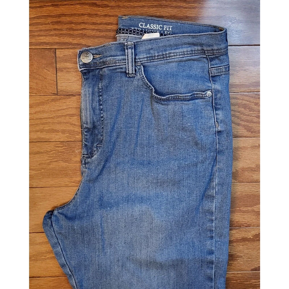Elevate your denim game with these LEE Platinum Label Classic Fit straight leg jeans. The timeless blue color and solid pattern make them a versatile addition to any wardrobe. The 5-pocket design with button and zip closure offers both style and functionality. Crafted from high-quality denim fabric with added stretch for comfort, these jeans are perfect for all seasons. The mid-rise waist and 30.5 inch inseam provide a flattering fit for women's size 12. The fringe, button, and zipper accents add a touch of retro vibe to the 80s-inspired theme. Waist measures 30 inches Inseam measures 30.5 inches Excellent pre-owned condition. No rips or tears. The zipper and button function properly. Add these to your wardrobe today!