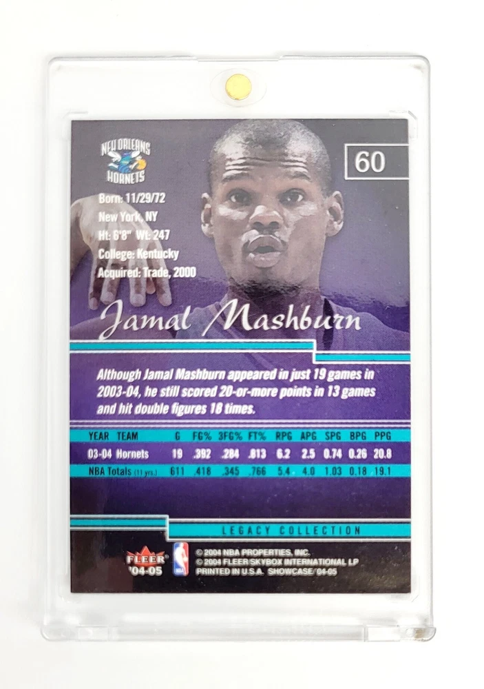 This Legacy Collection Foil Parallel 2004-05 Fleer Showcase trading card features a National Basketball Association (NBA) all-star team member in a limited edition, exclusive short print. The card is made of high-quality card stock and is an original. It's a perfect addition to any modern basketball trading card collection with its English language, near mint card condition, and the card number "Legacy". The card is manufactured by Fleer and was made in the United States. It's a single product, not part of a set, and is a parallel/variety of the Legacy Collection. Lastly, it's a great chase for sports trading card enthusiasts looking for a rare and unique card. One touch not included. Card will be well protected and shipped in toploader case.