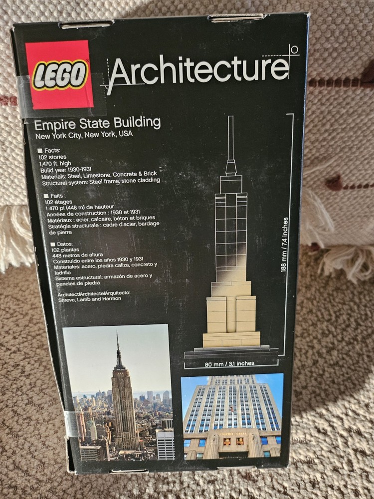 LEGO ARCHITECTURE: Empire State Building (21002). Complete set, adult collector. Includes box and instructions.