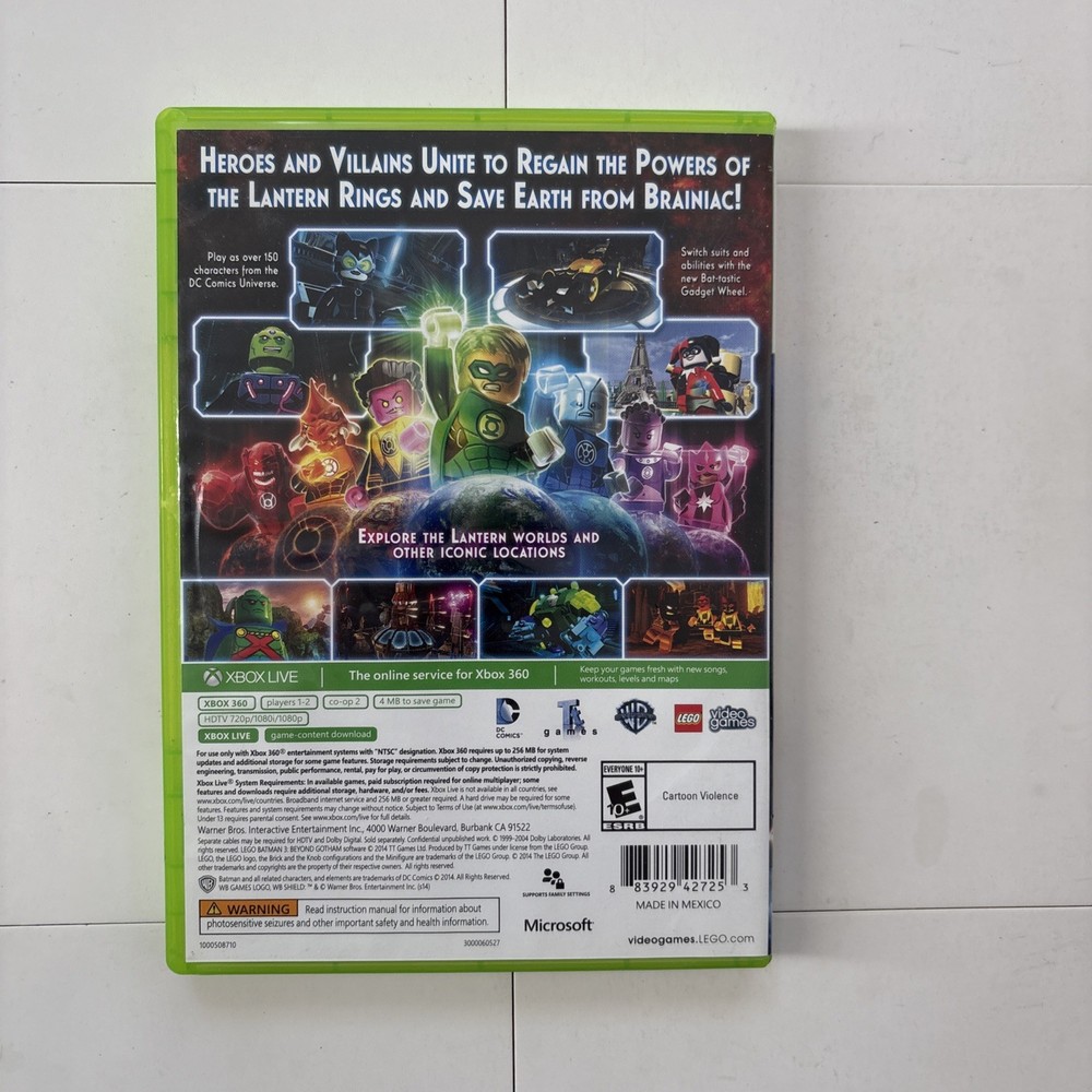 LEGO Batman 3: Beyond Gotham is a video game released for the Microsoft Xbox 360 in 2014. Published by Warner Bros., the game is part of the LEGO TT Games Platform Series and is rated E10+ (Everyone 10+). As an action and adventure game, players can expect to dive into a thrilling gaming experience with their favorite superhero, Batman, as they battle through a variety of challenges and puzzles in a LEGO version of Gotham City. With a mix of humor and gameplay, this game is sure to provide hours of entertainment for fans of all ages.