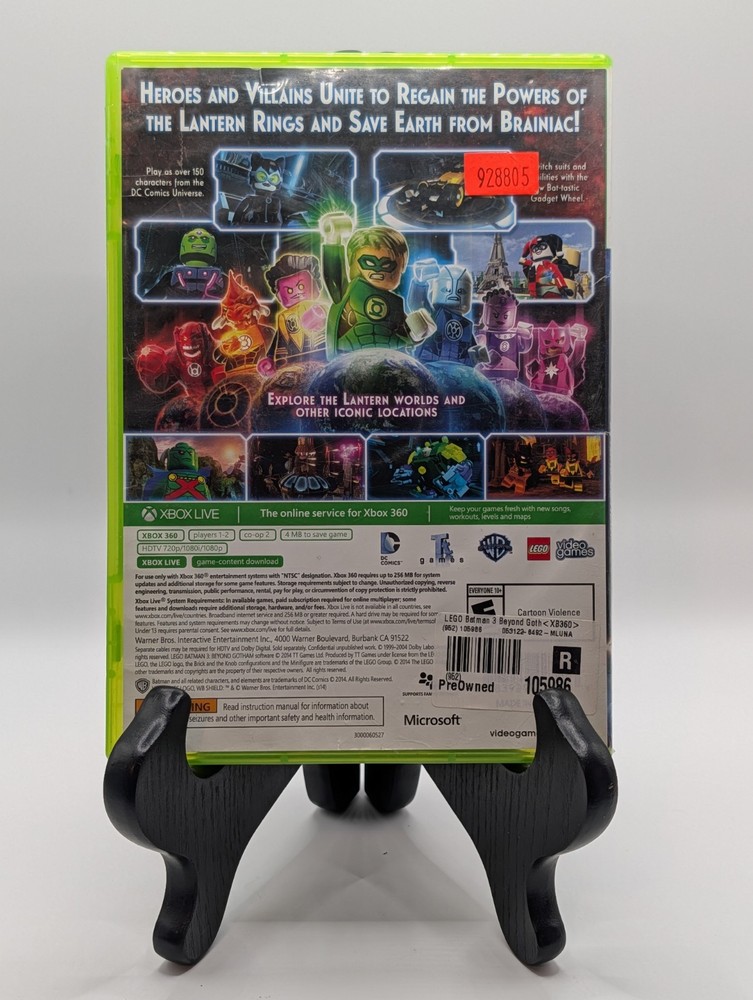 The product is LEGO Batman 3: Beyond Gotham for the Microsoft Xbox 360, released in 2014. Published by Microsoft, this NTSC-U/C (US/Canada) region game allows players to take on the role of Batman and explore the LEGO version of Gotham City. With the LEGO twist on the iconic superhero, players can engage in various adventures and battles in a light-hearted and fun gameplay experience.