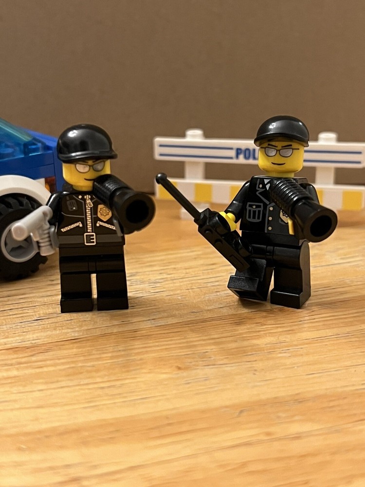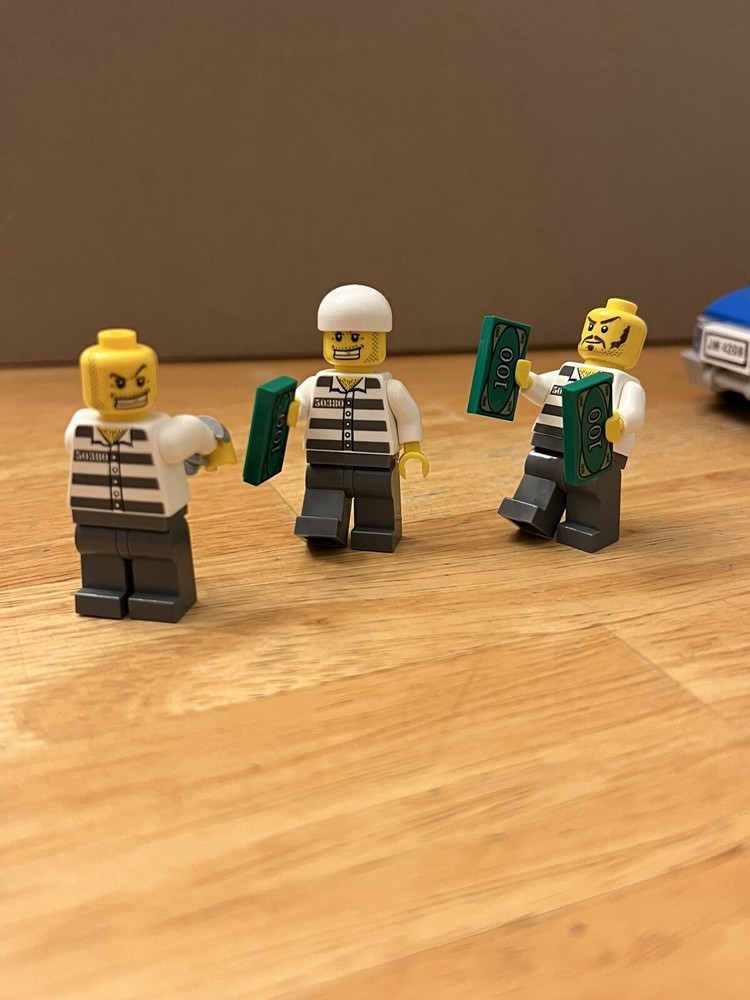 Get ready for an exciting LEGO CITY adventure with this modified police car set! This set includes 3 robbers and 5 officers, perfect for a thrilling playtime. The set is in great condition and is an excellent addition to any LEGO CITY collection. Order now and let playtime begin! NOTE:everything shown in image included(handcuffs, money, gun, etc.)