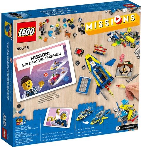 _desc_:Dive into an awesome world of interactive adventures with LEGO City Missions! Step away from building instructions and set out on exciting water police missions with LEGO City Adventures TV series character Duke DeTain. Meet a fun lineup of on-screen characters customize your cool speedboat and play the lead role in exciting digital stories! What will you build to save the day?LEGO Set Number:60355Item Width:9.96 inItem Length:11.77 inItem Height:11.02 ingtin13:0673419361934Item Weight:4.38 lbLEGO Set Name:Water Police Detective MissionsCountry/Region of Manufacture:MexicoLEGO Theme:CITYLaunch Date:08/01/2022Brand:LEGOMPN:60355Release Year:2022UPC:0673419361934Age Level:6+