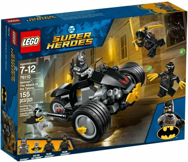 UPC: 5702016109030, 0673419280938 Item Width: 7.5 in Item Height: 2.4 in LEGO Theme: DC Comics Super Heroes LEGO Set Name: Batman: The Attack of the Talons Age Level: 7-12 Brand: LEGO LEGO Set Number: 76110 Release Year: 2018 Launch Date: 8/1/2018 gtin13: 0673419280938 Item Length: 10.3 in Number of Pieces: 155 MPN: 76110