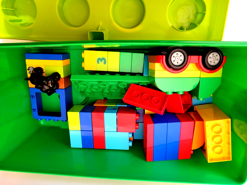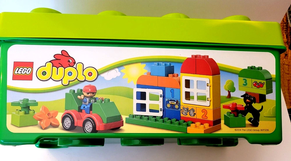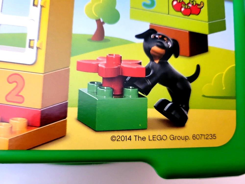 Lego Duplo Set # 6071235 My First Vehicle Cars Numbers Dog House Bricks Set. 2014 The Lego Group. 64 pieces plus container. Very nice condition.