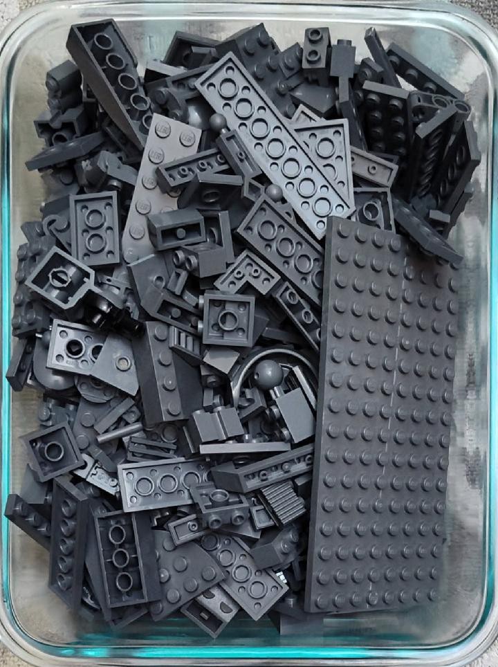 This product is a lot of 1lb of LEGO Dark Grey Slopes/Wedges Specialty Pieces, including bricks, plates, and tiles. These specialty pieces are perfect for adding variety and angles to your LEGO builds. Made by the well-known brand LEGO, you can trust in the quality and compatibility of these pieces to enhance your building experience.