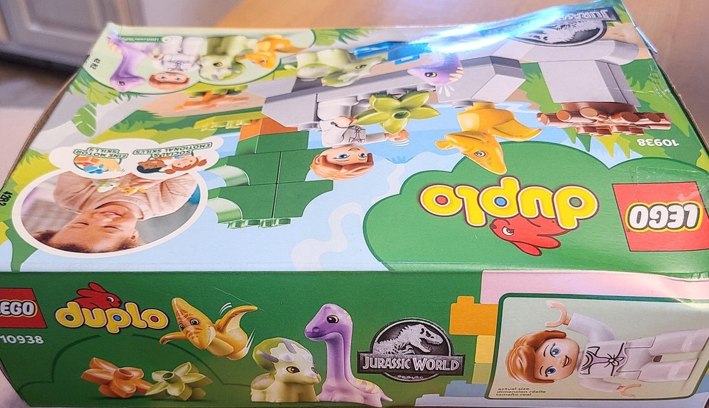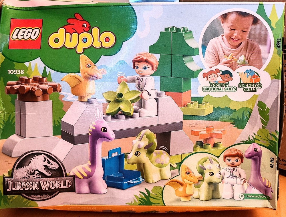 NEW IN FACTORY SEALED BOX. DAMAGED BOX. BOX IS CREASED & CRUSHED. DUPLO-LEGO. JURASSIC WORLD. BABY NURSERY - ADORABLE BABY DINO'S.