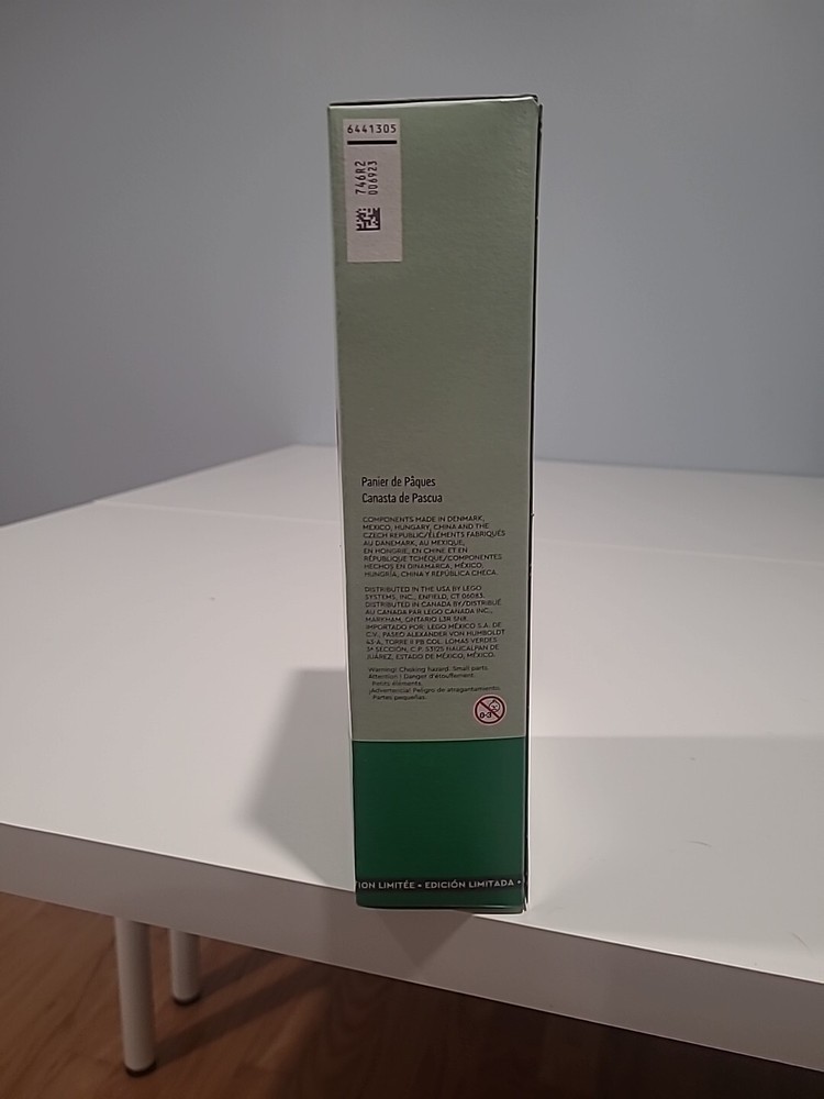 This LEGO set (40587) is the perfect addition to your collection, featuring 368 pieces of colorful plastic bricks to create an Easter Basket scene. The set is designed for children aged 9 and up, and includes a cute bunny and flowers as part of the Easter theme. The box is unopened and new in box (NIB) to ensure that you receive a complete set, ready for assembly. LEGO enthusiasts will love the attention to detail and quality of this retired GWP (gift with purchase) set, released in 2023 and part of the Easter LEGO subtheme. The item measures 5.55 inches in length, 2.4 inches in height and 10.31 inches in width, making it a great display piece for any animal lover or LEGO collector.