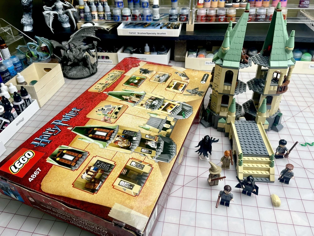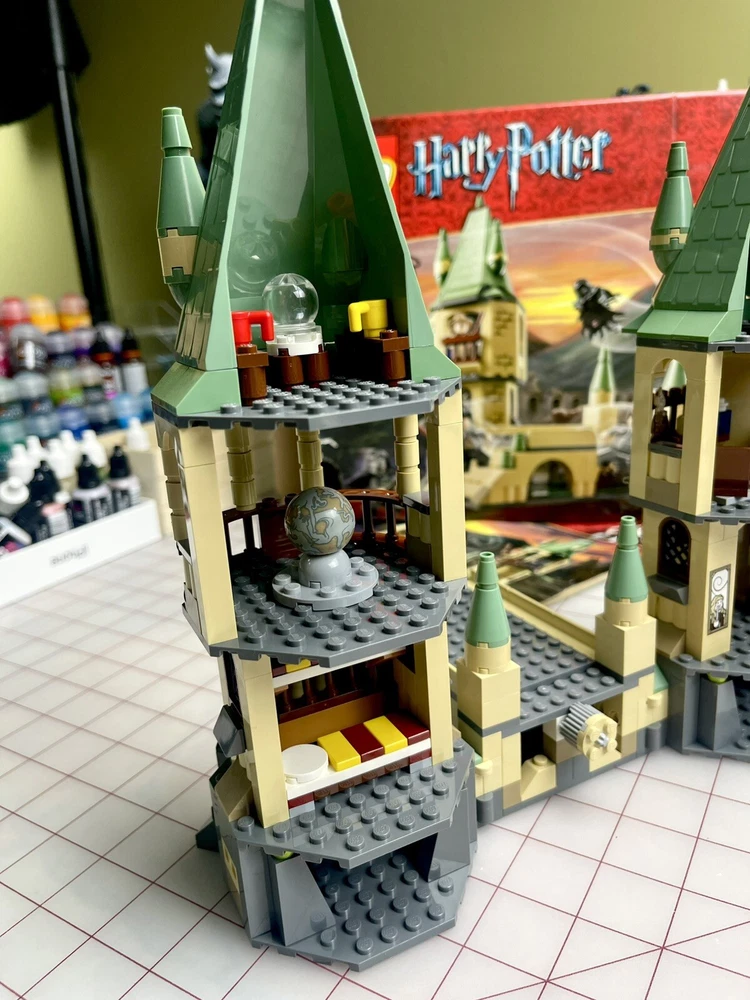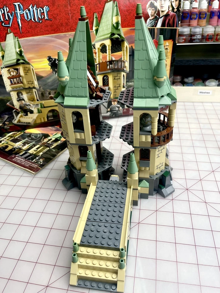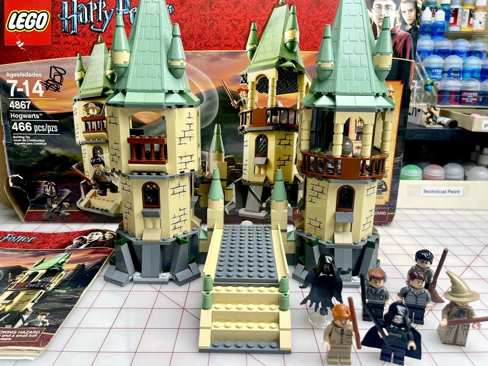 The LEGO Harry Potter Hogwarts set (4867) is a retired set released in 2011. It consists of 466 pieces and includes all 7 mini-figs, including the hard to find and rare Lucius Malfoy, Dementor, and Neville Longbottom. The set represents scenes from Harry Potter and the Deathly Hallows movie, featuring Hogwarts. The set is 100% complete with its original box and is ideal for fans of fantasy and movies aged 7-14. Box has some damage and was written on, as seen in photos