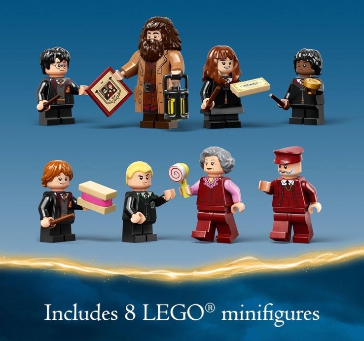 LEGO Harry Potter train set (76423) – Recreate the memorable scene where Hagrid greets first-year Hogwarts students arriving at Hogsmeade Station on the Hogwarts Express 8 Harry Potter minifigures – Harry Potter, Ron Weasley, Hermione Granger, Draco Malfoy, Lee Jordan, Rubeus Hagrid, the Trolley Witch and the train conductor, plus a family photo album element Hogwarts Express and tracks – The buildable train features an engine, coal car, 2 passenger carriages and a confectionery trolley. Rotate the engine’s front buffer beam for off-track journeys Hogsmeade train station – Features a ticket office, Owl Post, restroom and platform, all packed with iconic details, plus a buildable sign with directions to Hogsmeade and Hogwarts Harry Potter gift idea for ages 8 and up – Give this 1,074-piece LEGO building set as a special treat, birthday present or holiday gift to kids and any Harry Potter fan Build and play – The LEGO Harry Potter Hogwarts Express toy train measures over 3 in. (8 cm) high, 23 in. (59 cm) long and 2 in. (6 cm) wide A helping hand – Discover intuitive instructions in the LEGO Builder app where builders can zoom in and rotate models in 3D, track their progress and save sets as they develop new skills