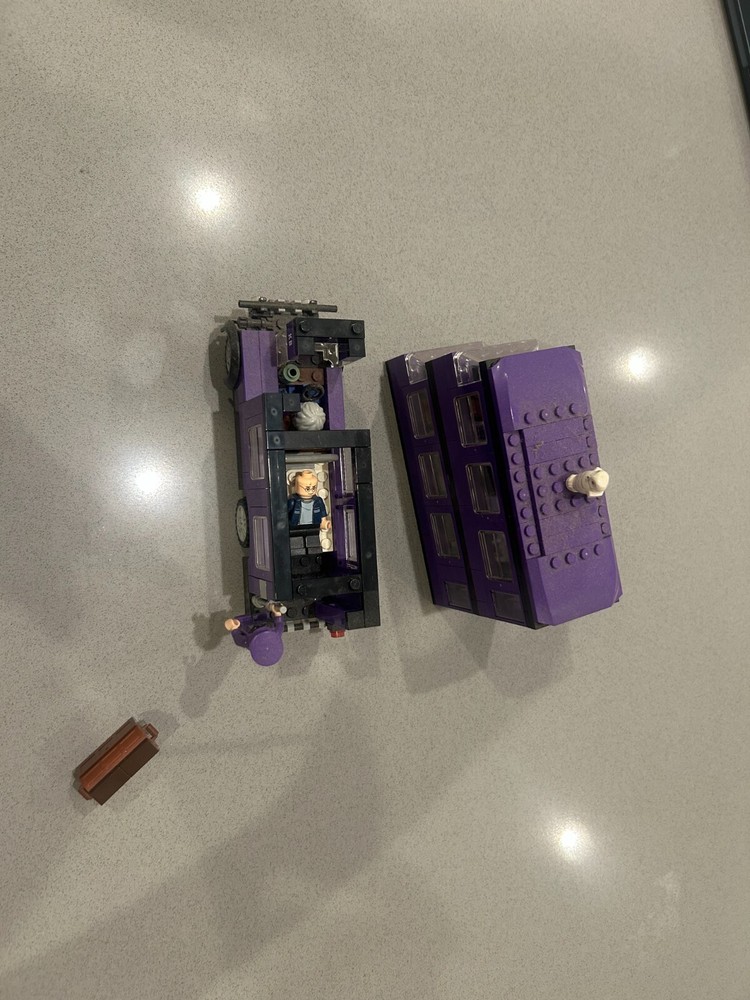 The Knight Bus 🧹 The set is complete. All 3 minifigures are included. Harry's hair is included although it is not shown in the photos. Blocks are in good condition. The set has been stored in a dark closet, so fading should be minimal. All stickers have been applied. The box and instruction set are not included. The bricks have been cleaned and are separated in bags based upon the instruction manual. Feel free to ask questions!