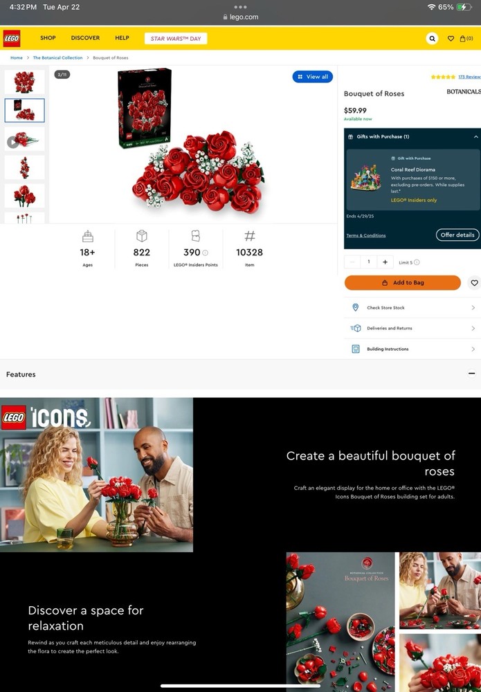 This LEGO rose bouquet is absolutely stunning! The vibrant colors and lifelike details make it a joy to build, and the finished arrangement looks elegant enough to display anywhere. The pieces fit together smoothly, and the quality is top-notch—just like real LEGO. Perfect for adults who love creative projects or want a long-lasting floral decor piece. Highly recommend for both LEGO fans and home decor enthusiasts!