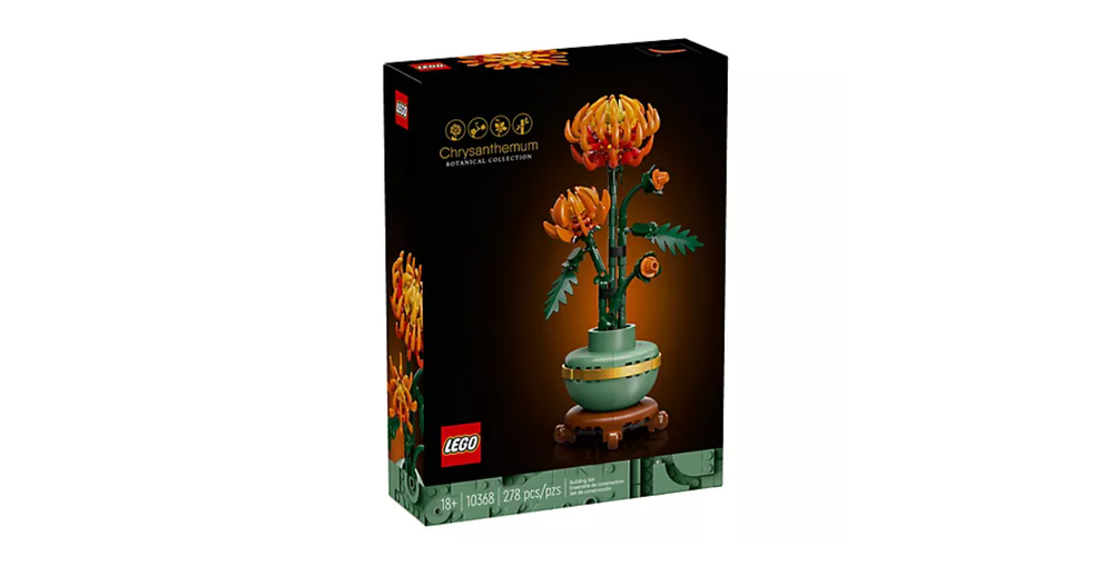 Description Indulge yourself or gift a loved one with the LEGO Icons chrysanthemum flower decor building set. This beautiful LEGO recreation features posable leaves and petals, depicting the vivid orange flower in various stages of growth, nestled in a pastel-green flowerpot with a golden band and wood-effect plinth. Let your creativity bloom with this timeless display piece for the home or office. From LEGO. Includes 278 LEGO bricks Ages 18 and up; warning: small parts choking hazard; not for children under 3 Imported.
