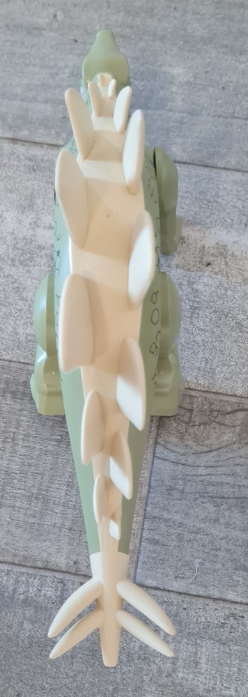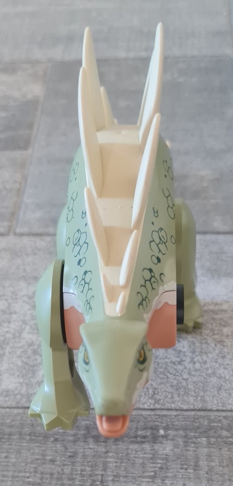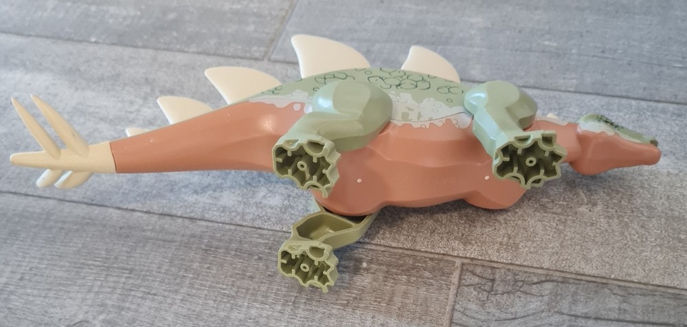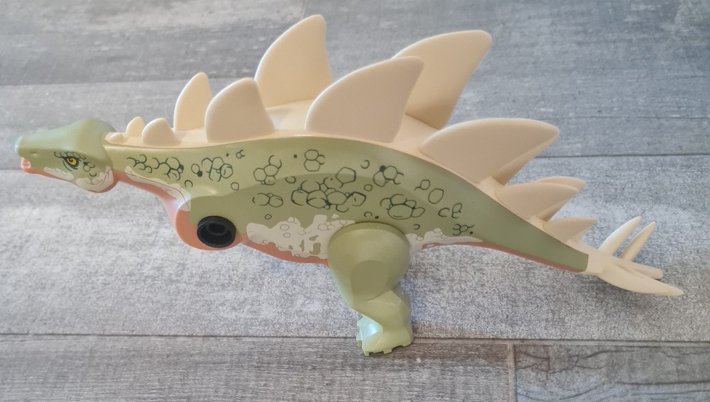 The product is a LEGO Jurassic World Dinosaur Missions Stegosaurus figure, part of the Jurassic World subtheme. It is a plastic minifigure with the minifigure number tricera07, packaged in a box suitable for ages 5 and up. This collectible toy features a Stegosaurus design, perfect for fans of dinosaurs and animal-themed LEGO sets. The missing leg is a unique aspect that could add to the play experience or make it a sought-after piece for LEGO enthusiasts and collectors alike.