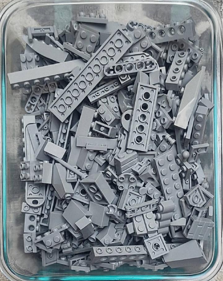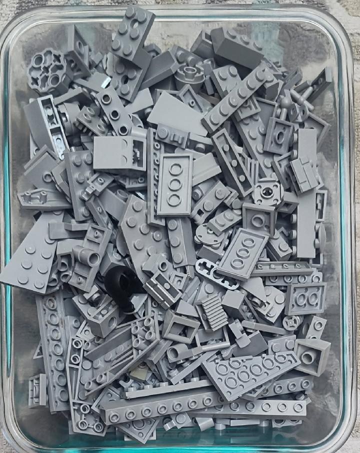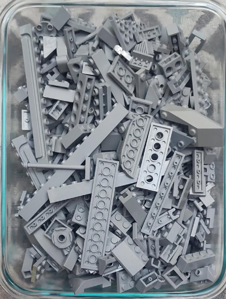 The product is a 1 lb lot of LEGO bricks, plates, tiles, slopes, wedges, and modified pieces in light grey color. This set includes a variety of LEGO pieces to build and create different structures and designs. As part of the LEGO brand, this lot offers a range of elements for creative and imaginative play. Perfect for both children and adult LEGO enthusiasts, this set provides endless possibilities for building and constructing.