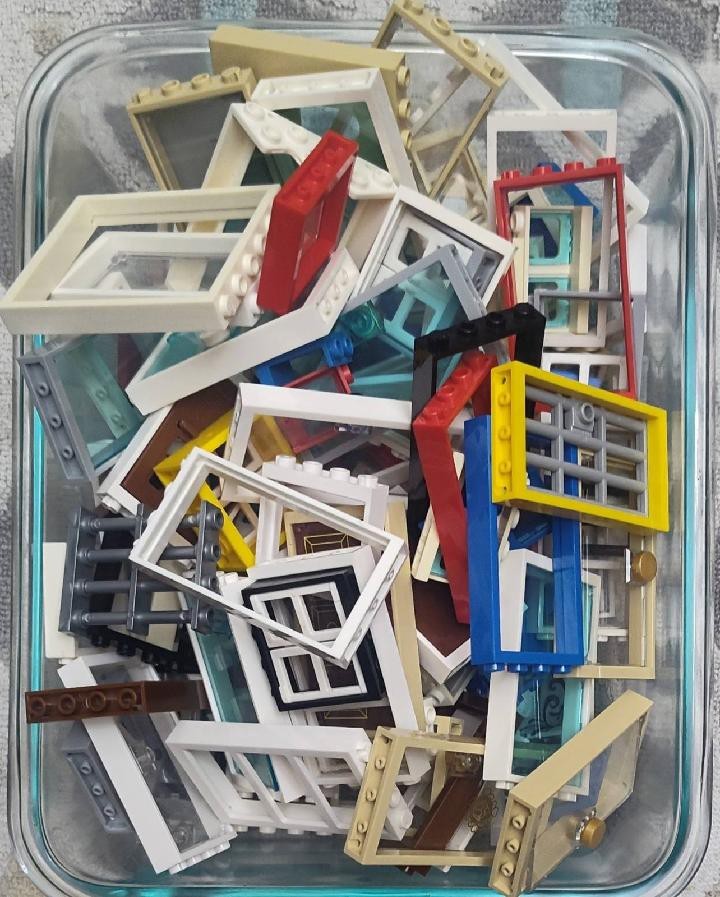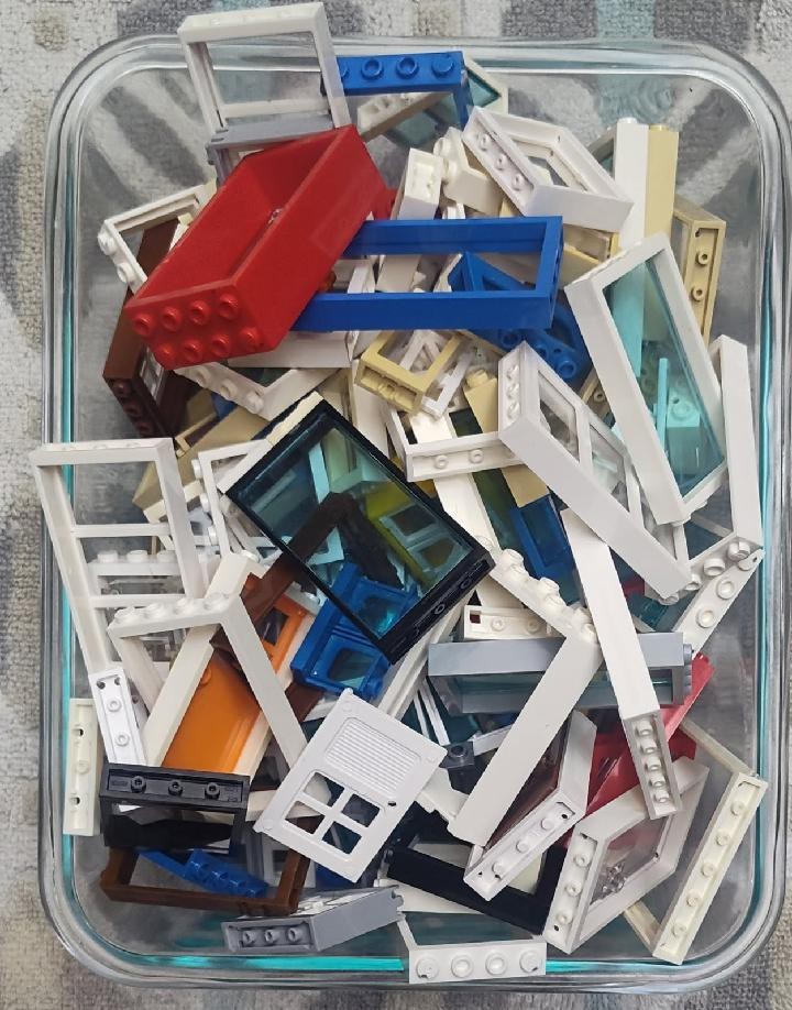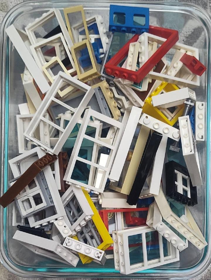 The product is a lot of LEGO bricks weighing 3/4 lb, specifically focused on windows, doors, window frames, and door frames. The bricks are from the popular LEGO brand and come in a variety of sizes and shapes to create different architectural details in building toys. This lot offers a collection of pieces to enhance imaginative play and creative building experiences for LEGO enthusiasts of all ages.
