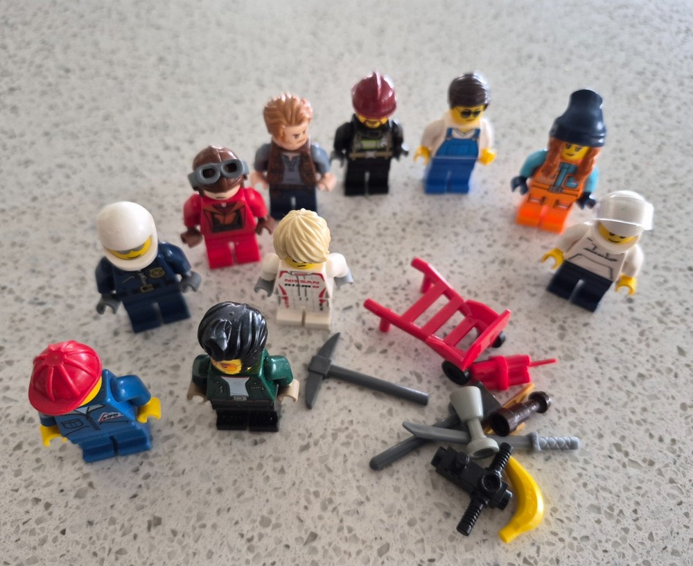 Each lot comes with: 10 TORSOS 10 LEGS 10 HEADS 10 HAT/HAIR 10 WEAPONS/ACCESSORIES equalling 50 pieces in total. These lots are randomly assembled from LEGO City, Minecraft, Chima, Space, Castle, Train, Galaxy Squad and may be mismatched combinations. Great for creating your own unique Lego minifigures or party/ wedding favors and will provide an opportunity for creative mixing and matching