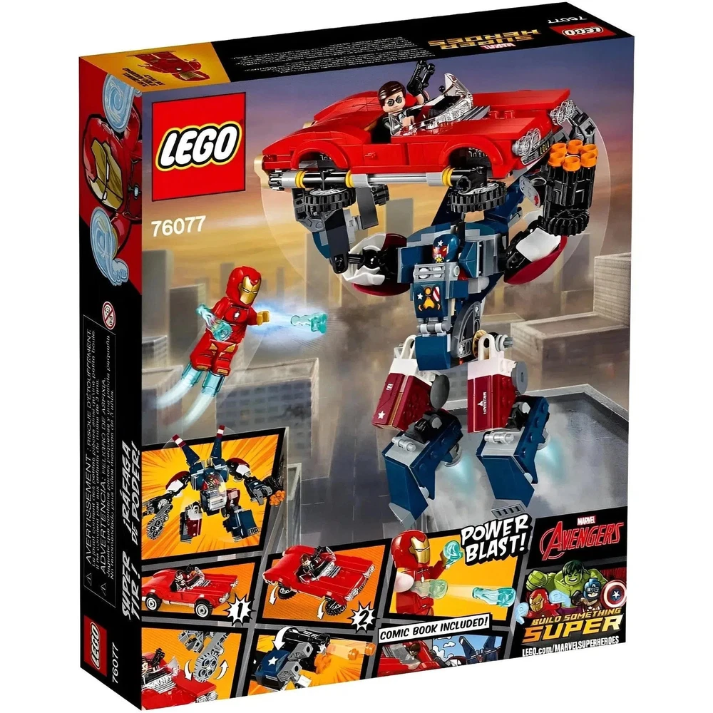 LEGO [Marvel Super Heroes] - Iron Man: Detroit Steel Strikes Building Set - Avengers Series (76077) Condition: New Step into the heart of the Marvel universe with the LEGO Marvel Super Heroes Iron Man: Detroit Steel Strikes set (76077). This thrilling construction kit propels builders into a high-stakes mission to save Agent Coulson from the clutches of the menacing Justin Hammer. The centerpiece of the set is the highly posable Detroit Steel weaponized mech, equipped with a minifigure cockpit, an arm-mounted chainsaw, and an impactful six-stud shooter. The meticulous attention to detail ensures an immersive building experience, capturing the essence of the Marvel storyline. Assume the role of Iron Man and navigate the challenges of the rescue mission, facing off against the formidable Detroit Steel mech. The set includes three minifigures, each contributing a unique dimension to the unfolding narrative. Agent Coulson's classic car, featuring foldable wheels, introduces an element of versatility for high-flying role-play adventures, enhancing the overall playability of the set. Immerse yourself in the intensity of the Marvel saga as Iron Man engages with Detroit Steel, utilizing the mech's powerful features to thwart the villainous plans of Justin Hammer. The set's meticulous design ensures that every component contributes to the authenticity of the Marvel universe, making it a compelling addition for both LEGO enthusiasts and Marvel fans alike. Explore the dynamic world of LEGO Marvel Super Heroes, recreate iconic scenes, and let your creativity soar as you construct this action-packed set. Join Iron Man on a quest to rescue Agent Coulson and deliver justice to the LEGO Marvel Super Heroes universe. Browse what else we have in stock - thousands of toys, games, and other fun merchandise from Poggers, the best toy store in the world!