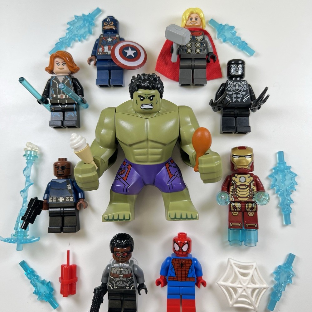 This product is a lot of 9 LEGO minifigures from the Marvel Superheroes Avengers series, including popular characters like Hulk, Iron Man, and Captain America. These plastic figures are part of the LEGO Super Heroes theme released in 2015, suitable for ages 4 and up. Fans of the Marvel universe can add these iconic heroes to their LEGO collection and recreate their favorite scenes from the Avengers franchise.