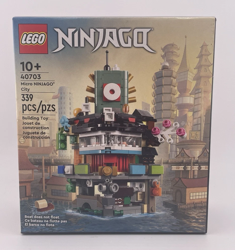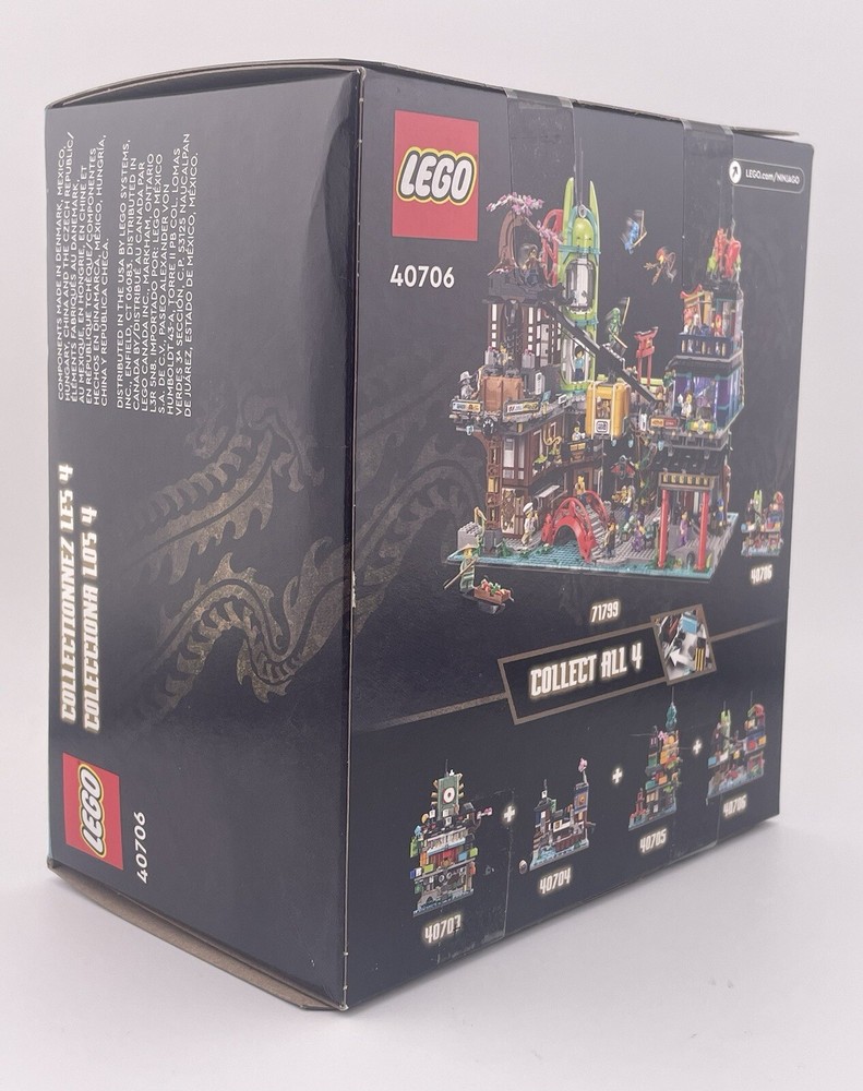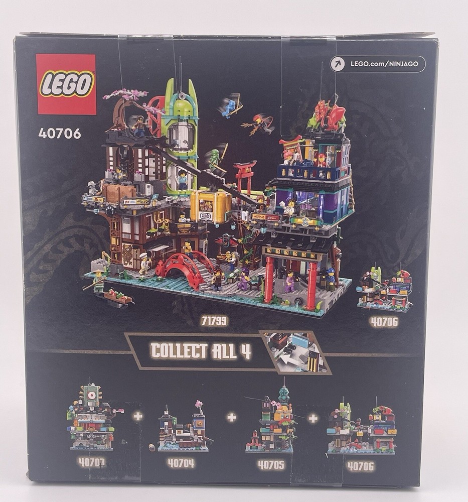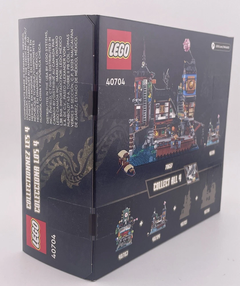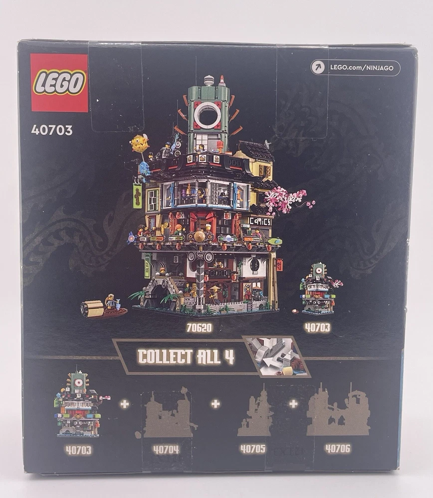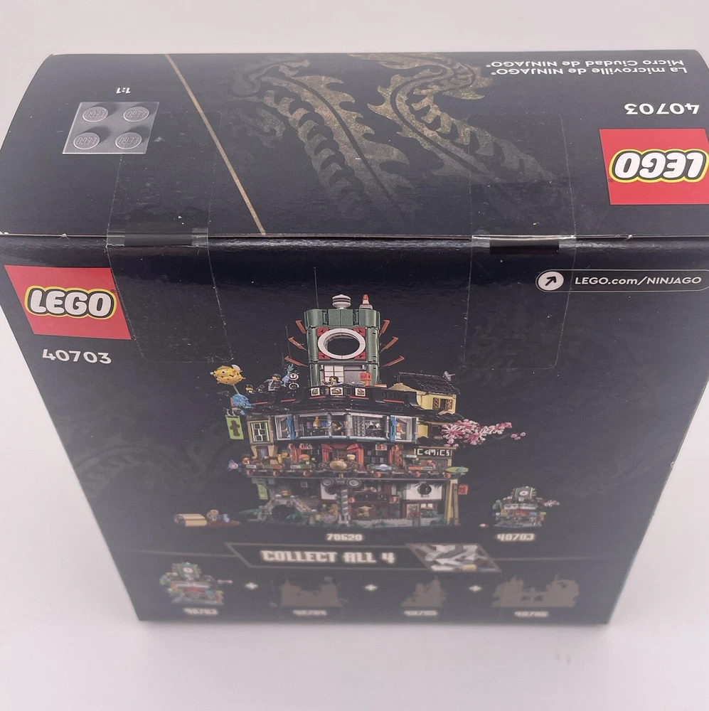 Experience the ultimate building adventure with this LEGO Micro Ninjago City Lot of 4 sets. The set includes 40703, 40704, 40705, and 40706, each with its own unique features and characters from the Ninjago universe. With a total of 339, 275, 376, and 365 pieces, this limited edition set is perfect for collectors and fans of all ages. Explore the city of Ninjago and build your own unique structures with this complete set. Featuring the iconic LEGO building experience, this set is made of high-quality plastic and is designed to last for years of fun. Don't miss out on this opportunity to own a piece of the Ninjago world. Sealed box(s) may have minor dings/dents. Items are sold in as-in condition, as depicted in photographs.