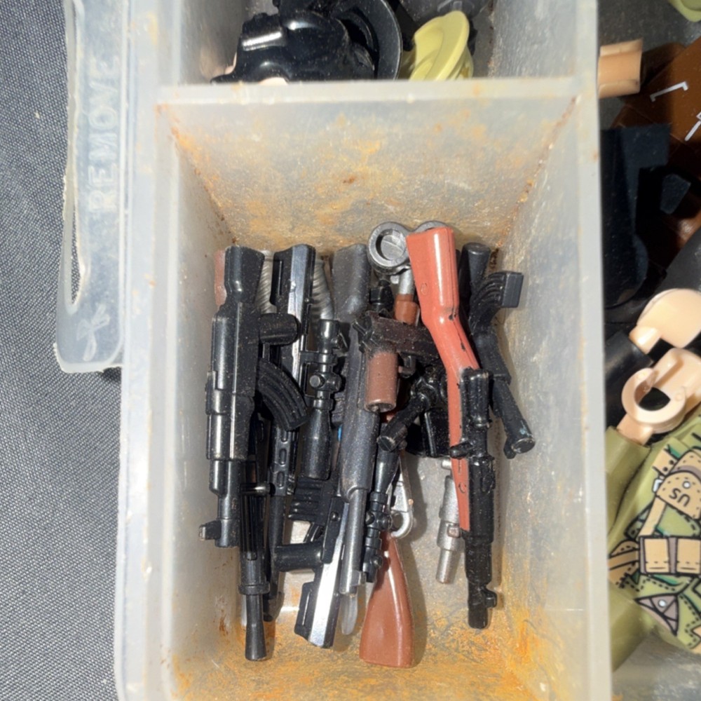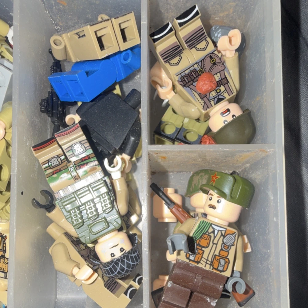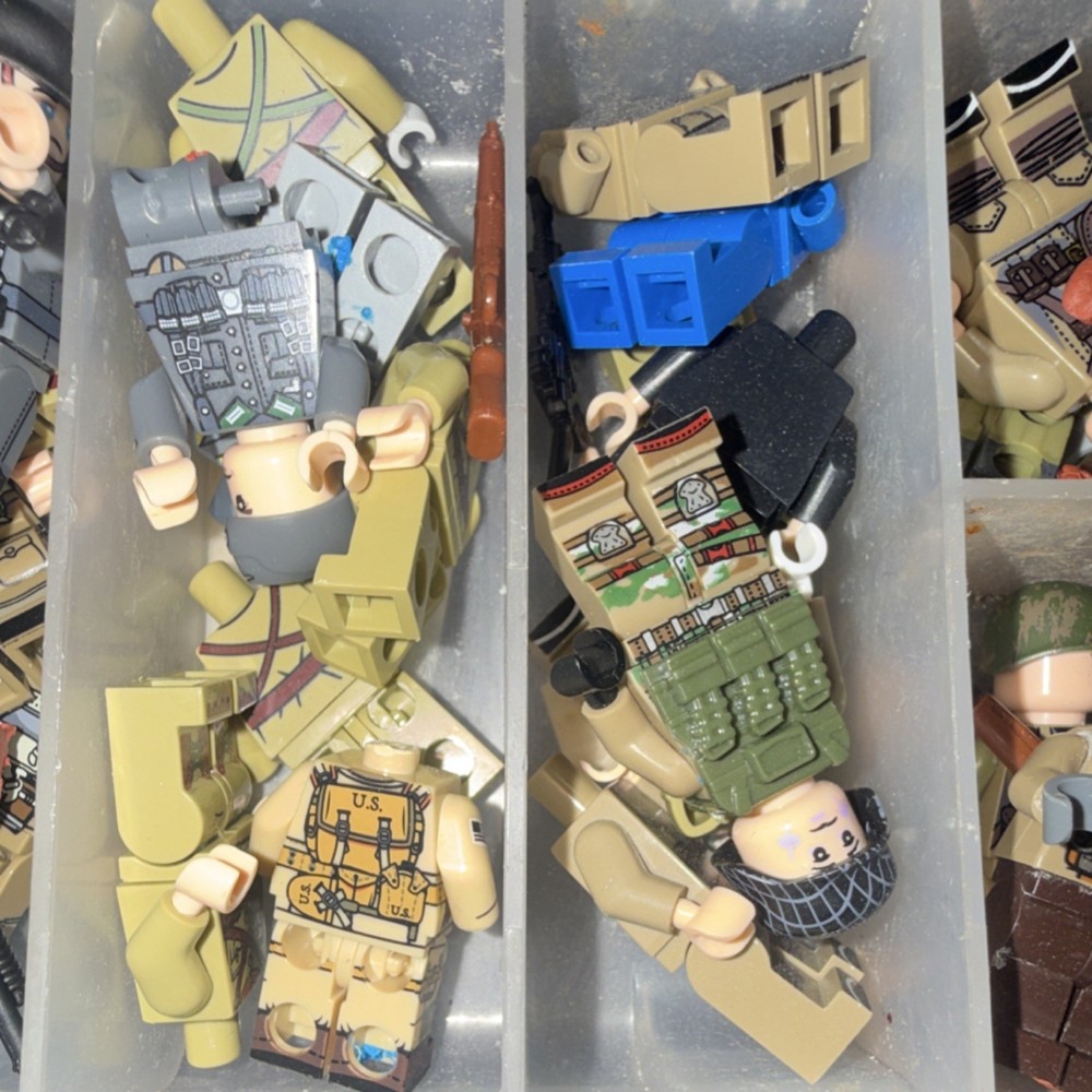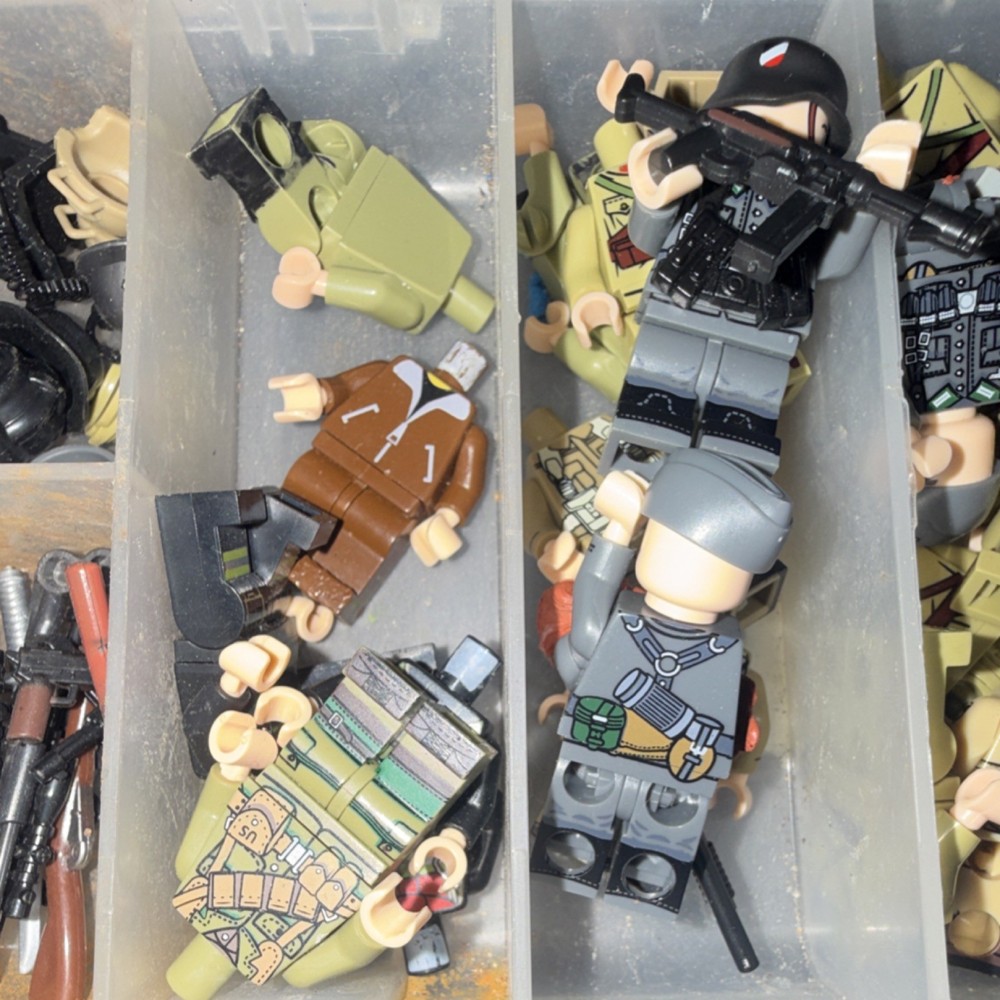 Logo Military Minifigure Lot with Accessories, Weapons, and Organizer Box