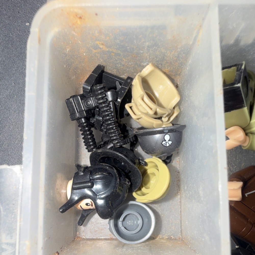 LEGO Military Minifigure Lot with Accessories, Weapons, and Organizer Box