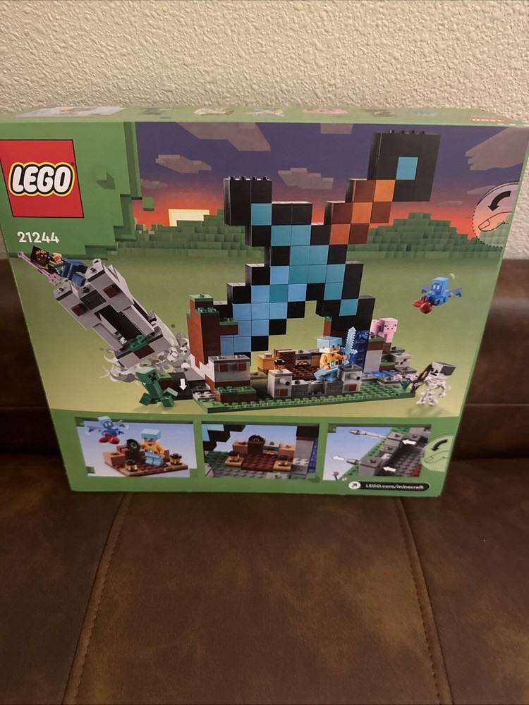 The LEGO Minecraft set "The Sword Outpost" (21244) features 427 pieces to build an intricate outpost structure. With a height of 11.02 inches, length of 11.77 inches, and width of 9.65 inches, this set includes various elements inspired by the popular video game, Minecraft. Aimed at children aged 8 and up, this set offers a fun building experience for fans of both LEGO and Minecraft, allowing them to create their own Minecraft adventures with this themed playset.
