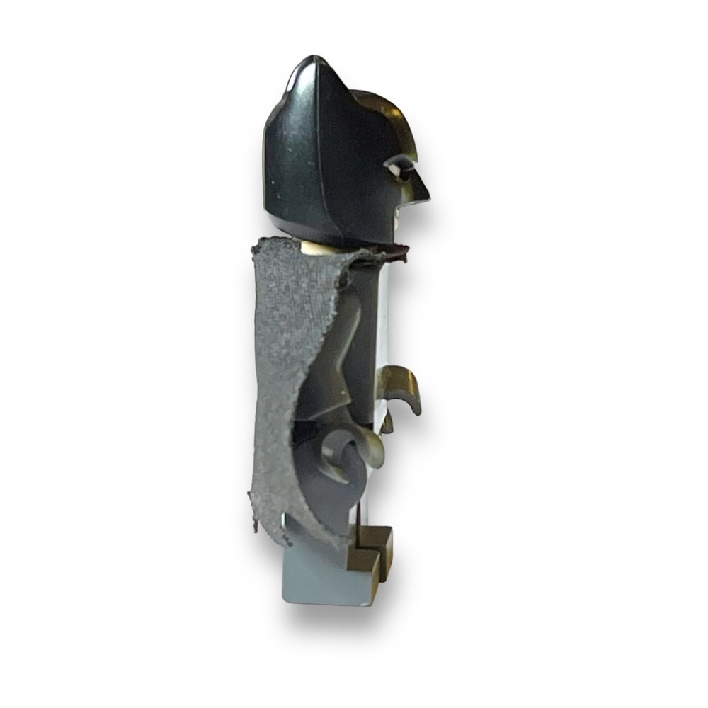 LEGO Minifigure Batman Jokerland Gray Suit Collectible Unleash your inner superhero with this exclusive LEGO Minifigure Batman Jokerland Gray Suit Collectible. This highly detailed figure features the iconic gray suit worn by the Batman in his infamous Gotham City lair. Perfect for collectors and fans of the Dark Knight, this figure is a must-have for any LEGO enthusiast. The minifigure is in good used condition and ready to wear. There is some wear on the cape.