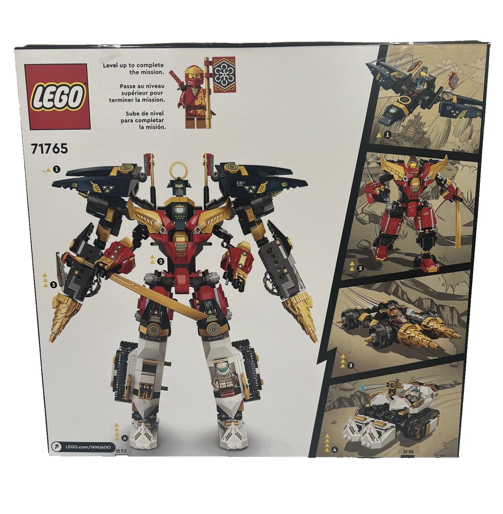 LEGO NINJAGO: Ninja Ultra Combo Mech (71765) BRAND NEW, Sealed Box. Retired Set. Ships fast with great care. Comes from a smoke-free home and professionally-minded collectors who care. Kids aged 9+ will be thrilled to play out hours of enthralling ninja action with this Ninja Ultra Combo Mech (71765) – a 4-in-1 vehicle playset. This mech toy is the ultimate fighting machine and consists of a mech, car, tank and jet that can all be played with separately. Premium building set packed with minifigures This Awesome toy includes 7 minifigures: Kai, Jay, Zane and Cole, plus Wu Bot and evil snake duo Cobra Mechanic and Boa Destructor for kids to create awesome battles. Building sets to fuel the imaginations of ninja fans NINJAGO® toys lure kids away from their screens and into an enthralling world of fantasy action. Here they can team up with their brave ninja heroes to battle the forces of evil with an extensive collection of building sets including mechs, dragons and temples.