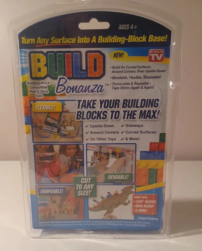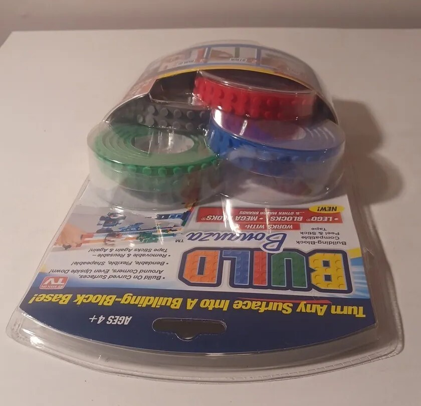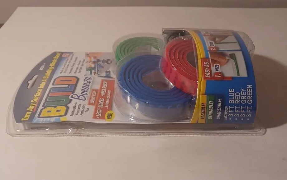 Brand new sealed 2017 Bonanza peel and stick. 4 colors. Each 3 feet long. Compatible with Lego and Mega bloks. Stick them to any surface to start building. Please see pictures for better details. If you have questions, feel free to ask.