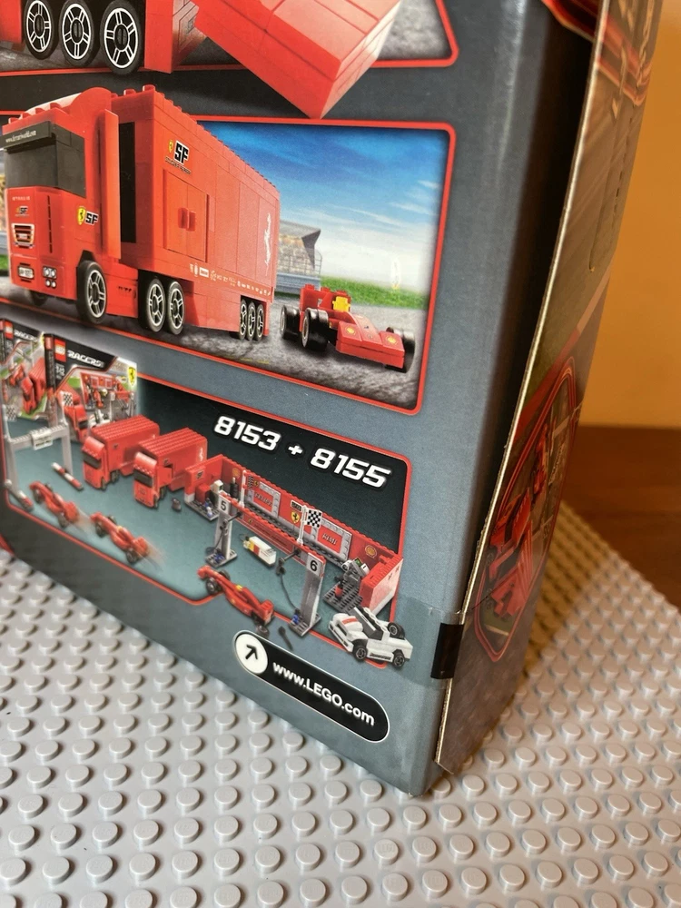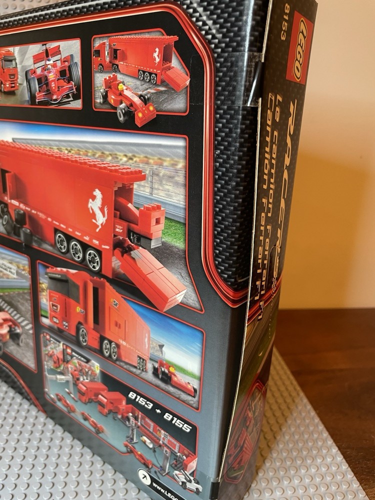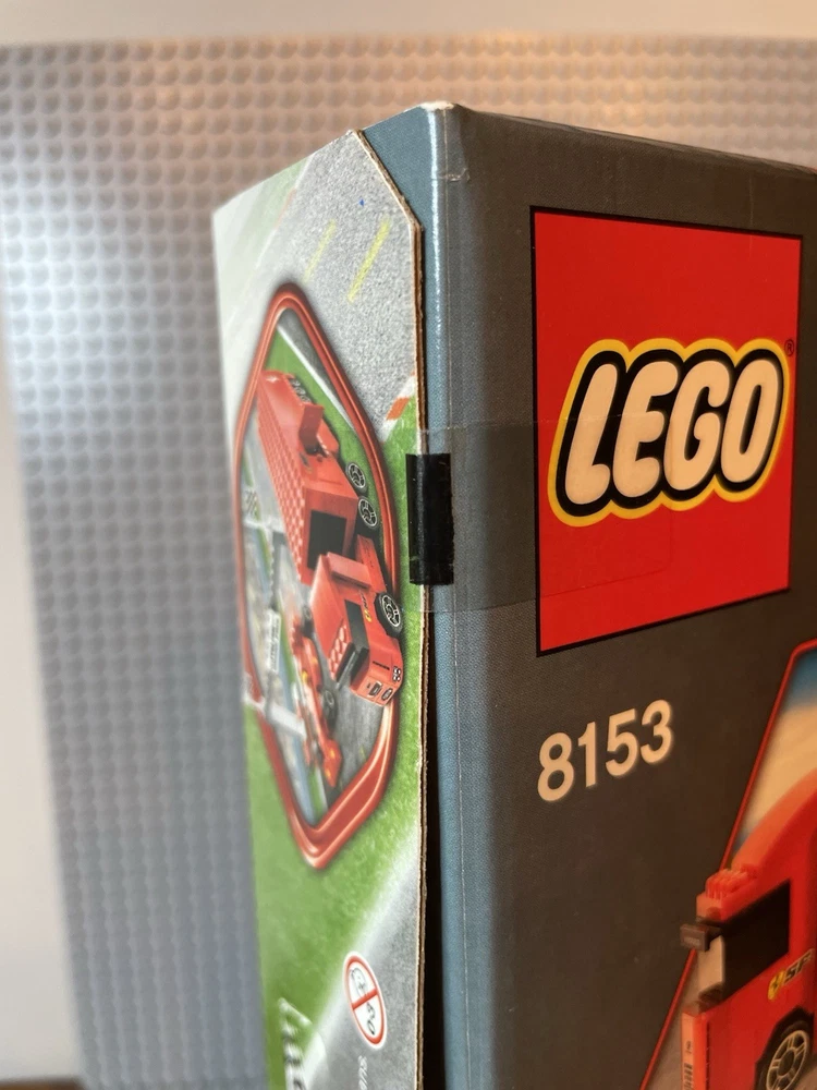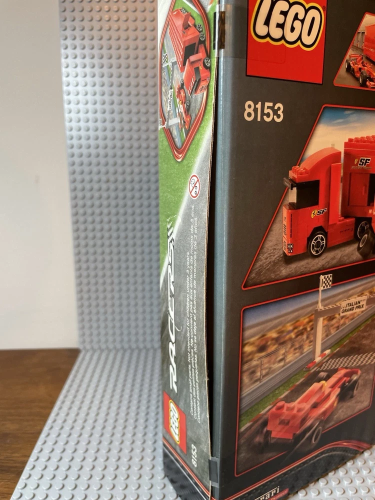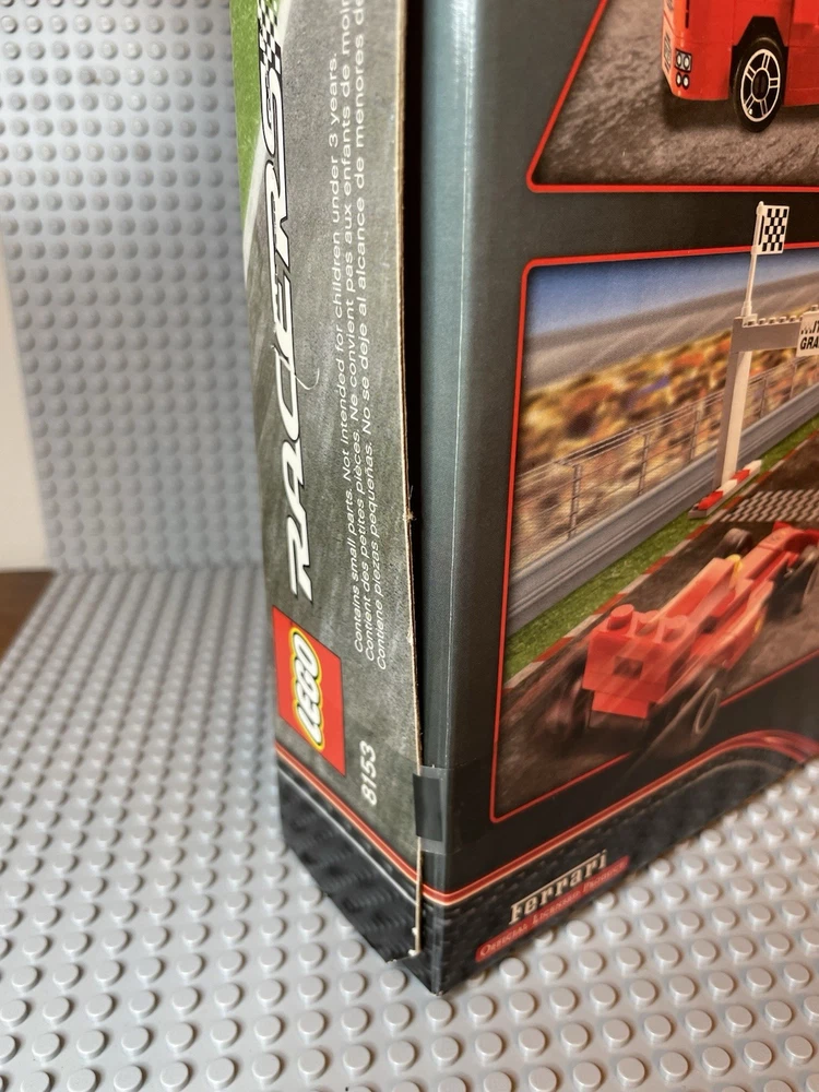 LEGO Racers: Ferrari F1 Truck (8153). New. Sealed Box. Box has shelf wear such as creases, scratches, dents. See pics for "bowing" on side flaps. Base plates not included.