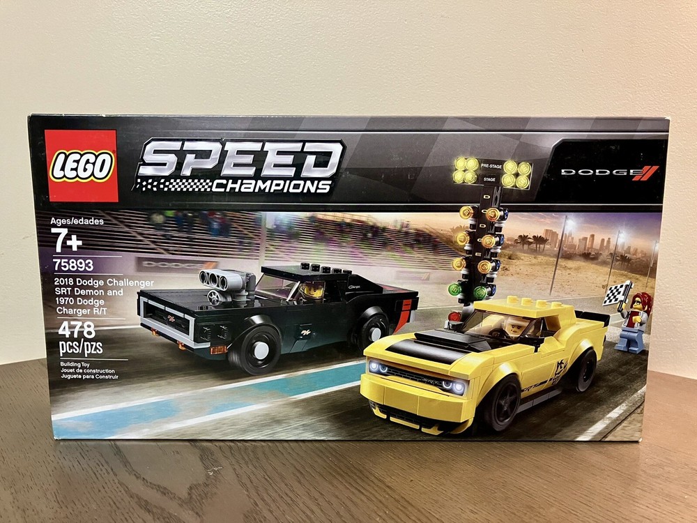 Get your engines revved up with this limited edition LEGO set, featuring the 2018 Dodge Challenger SRT Demon and 1970 Dodge Charger R/T. With 478 pieces, this complete set is perfect for car enthusiasts and LEGO collectors alike. The set includes two LEGO characters, a 2018 Dodge Challenger SRT Demon Driver and a 1970 Dodge Charger R/T Driver, as well as a race marshal and other accessories. This set is part of the LEGO SPEED CHAMPIONS theme and is perfect for kids aged 7 and up. The packaging is in a box format and is still sealed, making it a great addition to any LEGO collection. Don't miss out on this retired set from 2019 that is sure to impress both adults and children alike.