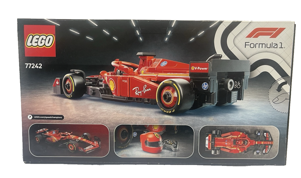 FAST FREE SHIPPING IN USA!!! ORDERS RECEIVED BEFORE 2PM - SAME DAY SHIPMENT!!! AFTER 2PM - NEXT DAY SHIPMENT!!! OUR WAREHOUSE WORKING MO-SAT(9am-9pm) CLEARANCE! Last pieces remaining—future availability currently unknown!!! "Discover our store! Explore a variety of interesting products at great prices. Don’t miss out—check it out now!" Product Details Feel the adrenaline of Formula 1 racing with this LEGO Speed Champions Ferrari SF-24 F1 Race Car. This detailed model features an opening cockpit, realistic sponsor stickers, and a Ferrari driver minifigure for thrilling race-day action. FEATURES LEGO Speed Champions Ferrari SF-24 F1 Race Car – Build, display, and race this Ferrari F1 model with a driver figure for ages 10 and up This vehicle set includes a driver minifigure wearing a special Ferrari outfit and a winged helmet for kids to place inside the cockpit and role-play thrilling race action F1 race car with design details from the real-life 2024 version, including a rear wing, a halo bar, sponsor stickers, and wider rear tires imprinted with “Pirelli” Race for the checkered flag alongside the whole family with other building sets (sold separately) in the LEGO F1 range After kids have enjoyed playing out racing stories with the Ferrari F1 toy, they can display it on a shelf or bedside table WHAT'S INCLUDED Includes 275 LEGO building elements DETAILS Age: 10 years & up 1.5"H x 8"L x 3"W Plastic Wipe clean Imported Set no. 77242