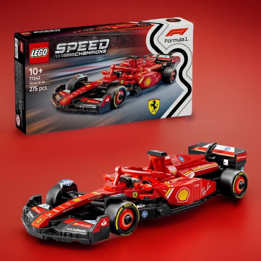 The LEGO Speed Champions Ferrari SF-24 F1 Race Car toy set, with the set number 77242, features 275 pieces and is suitable for kids aged 10 and up. This set allows kids to build their own Ferrari race car, perfect for those interested in building and cars. The set appeals to boys who love building and have an interest in Ferraris. With detailed measurements of 10.08 inches in length, 11.02 inches in height, and 6.18 inches in width, this LEGO set provides hours of fun and creativity for young builders.