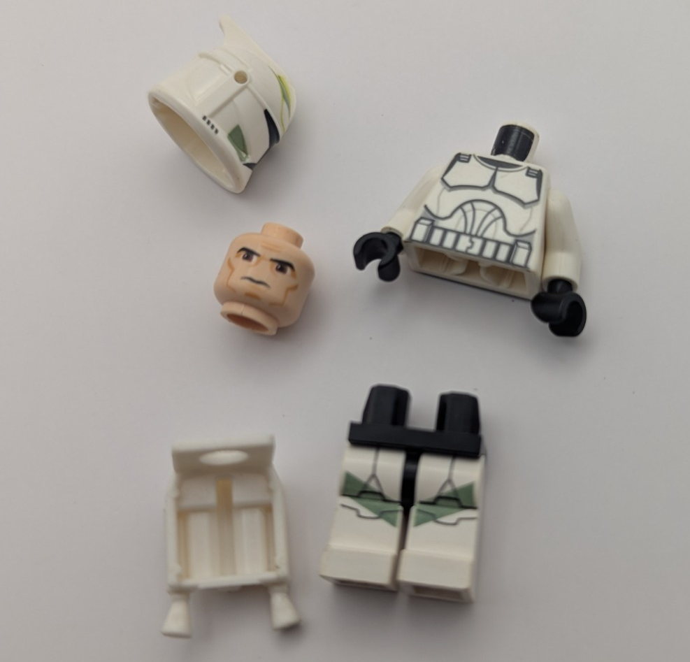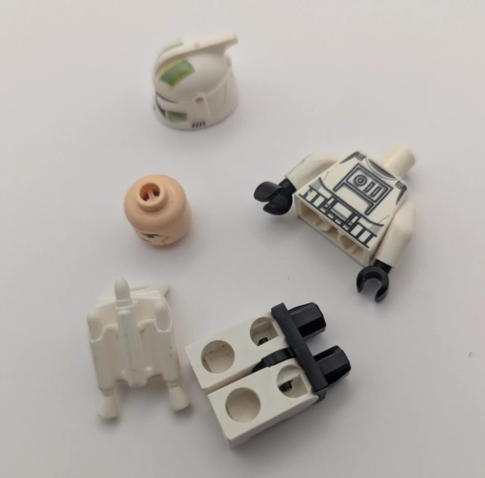 Description: Up for sale is a genuine LEGO Star Wars Clone Trooper (Horn Company) minifigure. This figure features the distinctive Sand Green markings on the helmet and legs , consistent with the SW0298 variant. IMPORTANT NOTE ON PRINTING: The torso (chest and back) of this specific variant ( sw0298 ) is solid white and does not feature any green printing. This is accurate to the original figure from set 7913. What is included: 1x Clone Trooper Minifigure (sw0298) 1x White Jetpack accessory.
