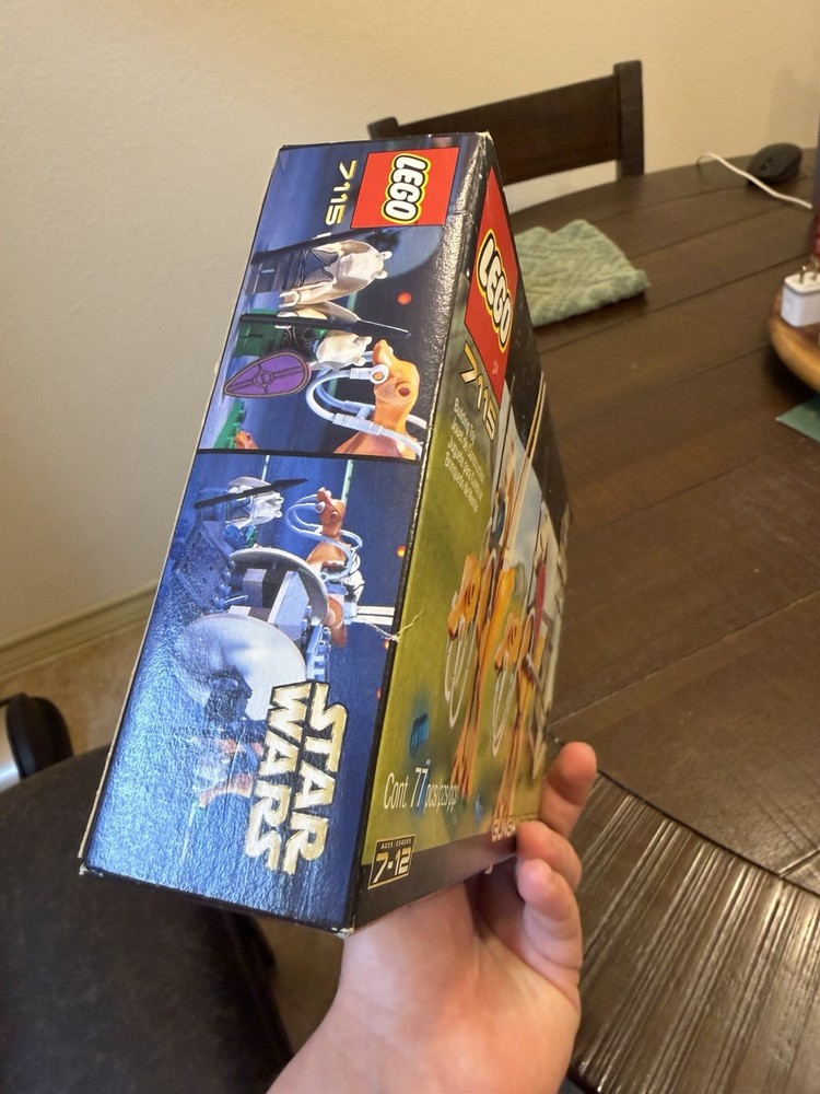 The LEGO Star Wars 7115 Gungan Patrol is a complete set that includes 77 plastic pieces to build the Gungan Patrol starship from the Star Wars universe. This set, released in 2000 and retired in 2022, is part of the LEGO Star Wars subtheme and features characters such as Jar Jar Binks, Patroller, and Gungan Warrior. The box has small shelf wear on the bottom left side otherwise in very good condition, please see pictures.