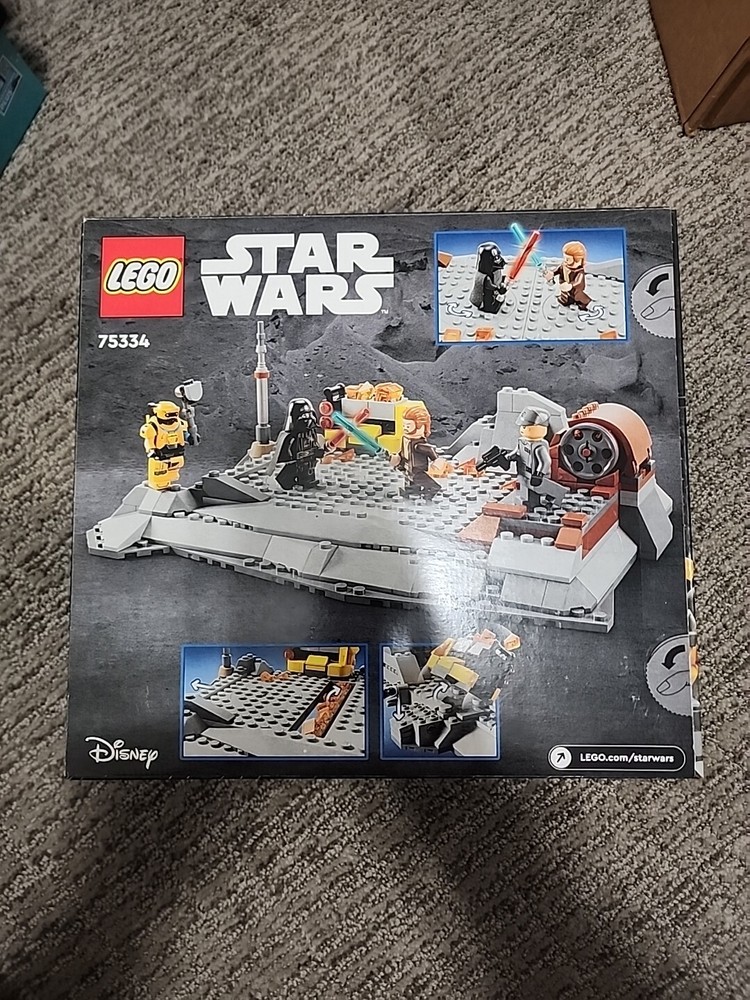 This LEGO set features a showdown between Obi-Wan Kenobi and Darth Vader from the Star Wars theme. The set number is 75334, released in 2022. It is a retired set with a height of 3 inches and dimensions of 11 inches in length and width. Suitable for ages 8 and up, this set allows fans to recreate iconic duels from the Star Wars universe.