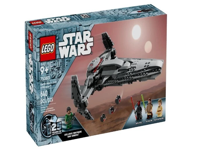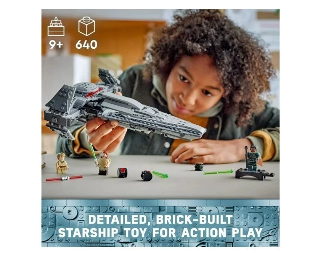LEGO Star Wars: The Phantom Menace Darth Maul’s Sith Infiltrator Starship Toy Product details Build Darth Maul’s Sith Infiltrator (75383) and role-play his pursuit of Qui-Gon Jinn from Star Wars: The Phantom Menace with this starship building toy for kids ages 9 and up. A gift idea for Star Wars fans and collectors, this unique set features a detailed LEGO brick-built toy model of Darth Maul’s personal starship, with lots of playful features to inspire action-packed fantasy adventures. Fold out the wings and retract the landing gear for flight, fire the 2 spring-loaded shooters and press the trigger to drop 3 DRK-1 Probe Droids from the front compartment. There are 4 LEGO minifigures for creative play: Darth Maul, Anakin Skywalker and Qui-Gon Jinn, plus an exclusive LEGO Star Wars 25th anniversary Saw Gerrera minifigure with a display stand. Darth Maul is equipped with a double-bladed lightsaber, and Qui-Gon Jinn has a lightsaber for duels, and the set also includes Darth Maul’s Bloodfin speeder, which fits inside the starship cockpit. Contains 640 pieces. LEGO Star Wars brick-built Darth Maul starship toy – Recreate Darth Maul’s Sith Infiltrator and Bloodfin speeder, and play out Star Wars: The Phantom Menace scenes with this building toy for kids Fantasy-adventure building toy with 4 LEGO minifigures – Darth Maul, Anakin Skywalker and Qui-Gon Jinn, plus an exclusive LEGO Star Wars 25th anniversary Saw Gerrera minifigure with a display stand Playful details – Features foldout wings for flight, retractable landing gear, 2 spring-loaded shooters and a trigger-operated hatch to release the 3 DRK-1 Probe Droids from the front compartment Collectible building toy for creative play – Darth Maul can sit on his Bloodfin speeder in the starship’s cockpit, and the set also includes his double-bladed lightsaber and Qui-Gon Jinn’s lightsaber Gift idea for kids ages 9 and up – This LEGO Star Wars starship building toy makes a fun birthday gift for boys, girls and any Star Wars fan or collector Collectible Star Wars building toys for kids and all ages – LEGO Star Wars sets allow kids and adult fans to relive classic scenes, role-play unique stories or simply display the buildable models Build, play and display – The brick-built Star Wars toy starship in this 640-piece LEGO building set measures over 3 in. (7 cm) high, 11 in. (27 cm) long and 7.5 in. (20 cm) wide More details Features Collectible Brand LEGO Age Range 9 Years & Up Character Darth Maul Product Line LEGO Star Wars Theme LEGO Star Wars Manufacturer LEGO System Inc Material Plastic Color Multicolor Assembled Product Weight 1.74 lb Assembled Product Dimensions (L x W x H) 13.94 x 7.52 x 3.58 Inches