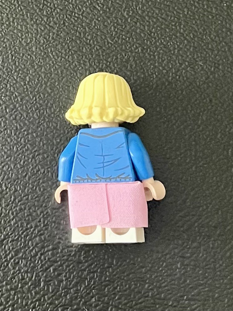 LEGO minifigure of Eleven from the Stranger Things theme, specifically from set 75810 The Upside Down House. This collectible item is made of plastic and was manufactured in 2019. It is part of the LEGO brand and falls under the LEGO Stranger Things subtheme. The minifigure includes a waffle accessory and is designed to be a detailed representation of the character. This retired piece was released in 2019 and is no longer in production, making it a sought-after item for LEGO enthusiasts and fans of the popular TV show.