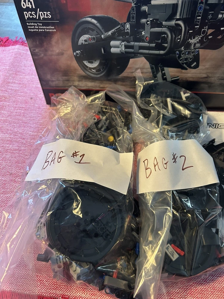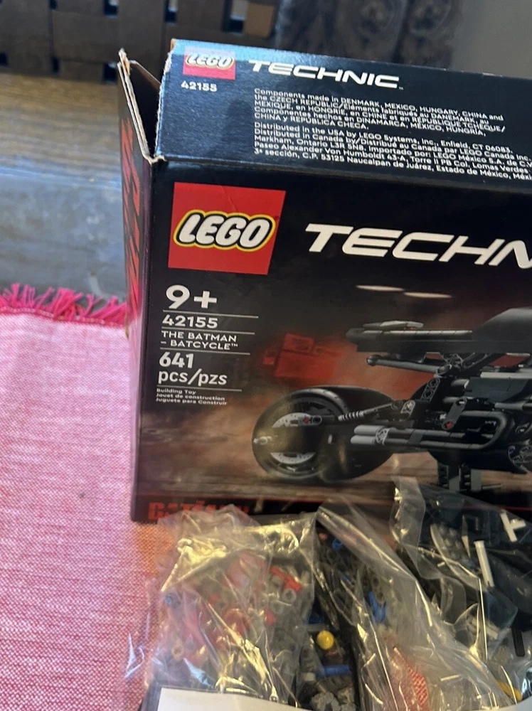 Defend the streets of GOTHAM CITY with this LEGO Technic THE BATMAN - BATCYCLE. Capture the spirit of a legendary crimefighter as you assemble authentic features like the steering suspension and the chain drive that connects the engine with the back wheel. Recreate your favorite Batman moments. Then use the stand to display your model and bring a piece of movie magic into your home. All parts have been counted, washed and placed in step 1 & 2 bags. Box has some damage (see photos). _____________________________________________________________ All LEGO products are 100% genuine- no FAKE products found here. All sales have 30 day return policy within the United States. Returns must be received back in the same condition as sent. If product is sent new and in sealed box, it must be returned in new and sealed box.(I'll even pick up the tab for your postage back). I'm super easy to deal with and want to ensure you are 100% confident in your purchase.