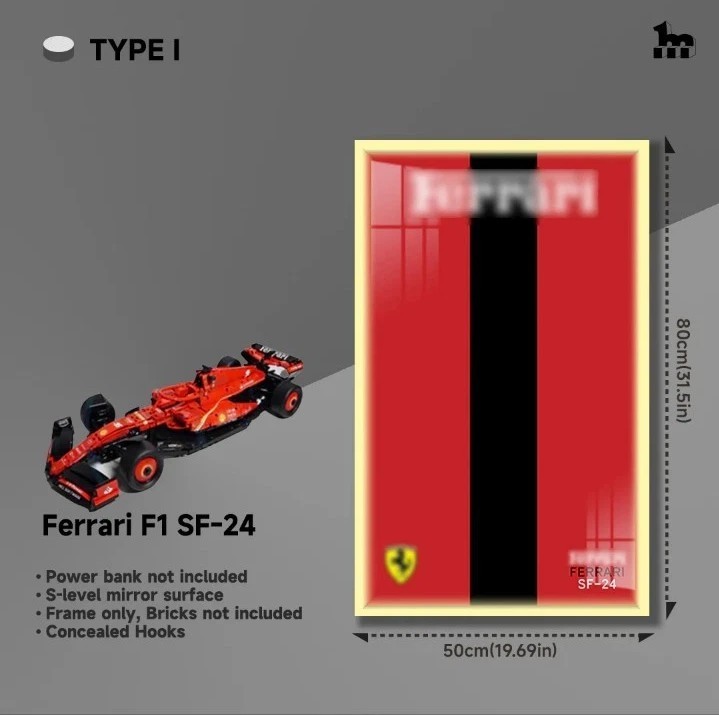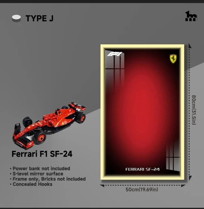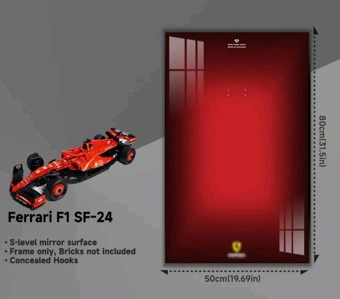 1. This LEGO Technic Ferrari F1 SF-24 display frame is a must-have for any racing fan! The sleek design perfectly showcases the model’s intricate details, making it look like a true collector’s piece. The optional illumination adds a stunning touch, turning it into a real centerpiece for any room. The craftsmanship is top-notch, and the customizable options let you make it uniquely yours. Whether you’re a die-hard Ferrari fan or a LEGO enthusiast, this frame elevates your build to gallery-worthy status. Absolutely love how it highlights every detail—worth every penny!