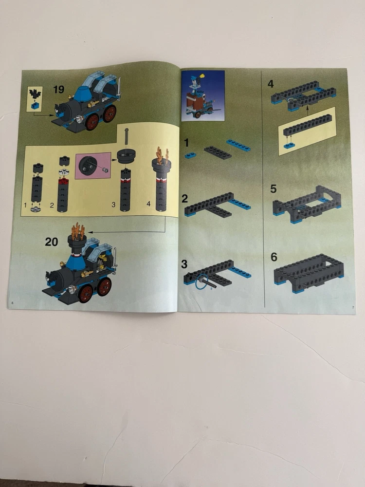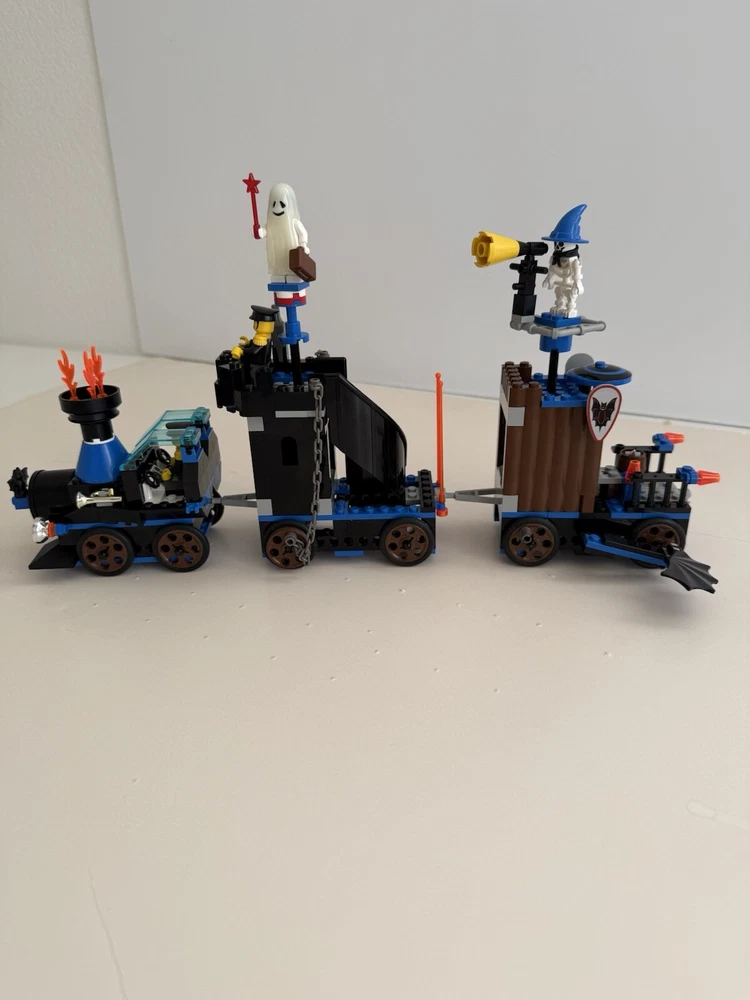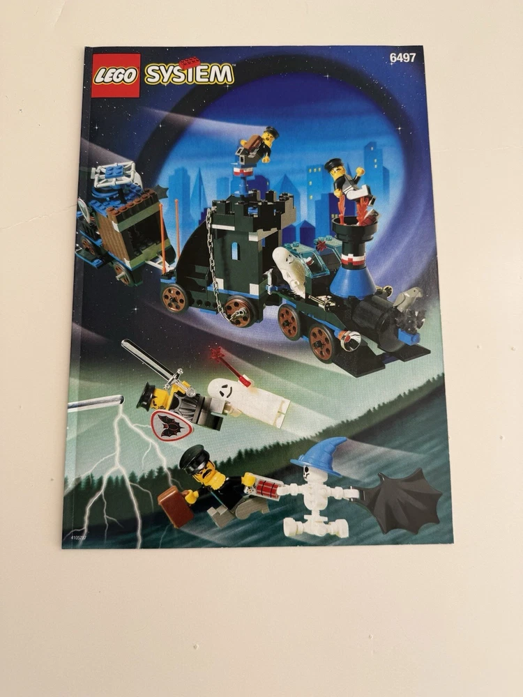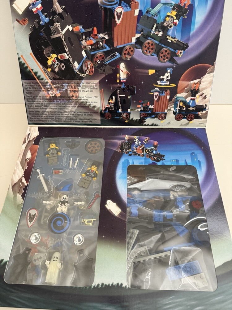 This is a LEGO Time Twisters set, specifically the Twisted Time Train (6497) from the Time Cruisers theme. Released in 1997 with 296 pieces, this retired set includes the box, instructions, and features a train design. Box may show some wear. For ages 9-12 and is made of plastic. 3 part train: engine with pilot seat, observation car with balcony, Ghost car with castle like features. 2 mini figures, Ghost and Skeleton. I’ve been an adult collector of Legos and other collectibles for the past 30 years. All of my items have been purchased new and have only had one owner-me. It is stored in their original boxes in a smoke-free environment.