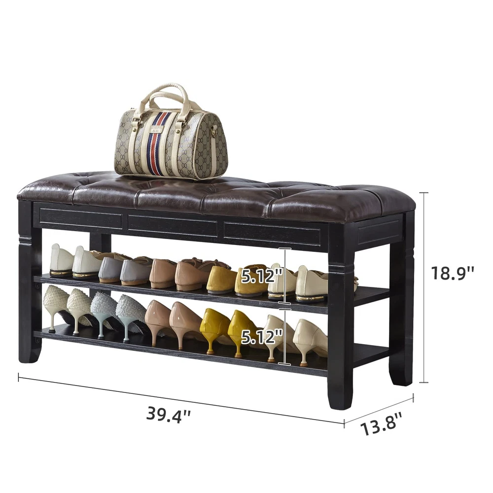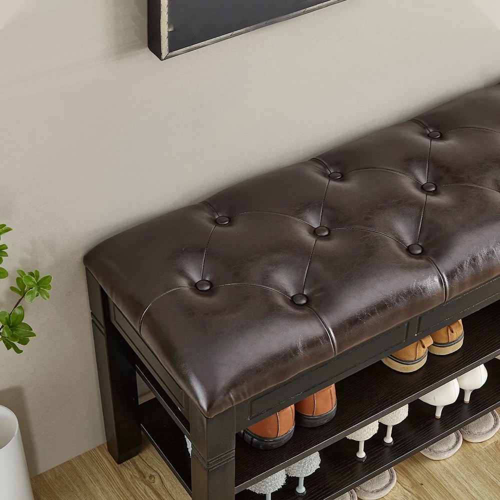 If your entrance area looks a little monotonous and shoe all over the place, this shoe bench will come in handy, create a tidy and welcoming entryway with this shoe storage bench. The LEILISI Shoe Storage Bench with cushioned seating is designed to offer the right blend of functionality and aesthetics that will keep your entryway clean and tidy. You can conveniently organize your footwear and use it as a comfortable bench to take your shoes on and off. HIGH QUALITY MATERIAL: This shoe bench is made from 100% solid rubberwood, Use the water-based coating paints, sturdy and durable, the max load capacity can up to 450 Lbs. CHEMICAL FIBER LEATHER: The upgraded model of environmentally pleasant cloth, distinct from PU leather-based, more wear-resistant and durable, like new even supposing used for a long time. ADEQUATE SPACE: Accommodate 10~12 pairs of footwear, flip storage design, anti-pinch buffer device, ample garage area to position some small gadgets (insoles, socks, shoes brush, shoe polish,etc.) EXQUISITE SHOE BENCH: Strong wooden bench isn't smooth to crack, feature simple and classical appearance design, can be use on bed room, living room, hallway, entryway, etc. EASY TO ASSEMBLY: Simply fasten the legs and board together in the order of installation, detailed instruction helps you to quick install the shoe rack in a few minutes.