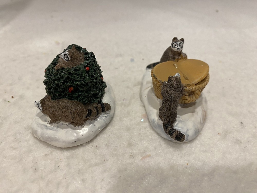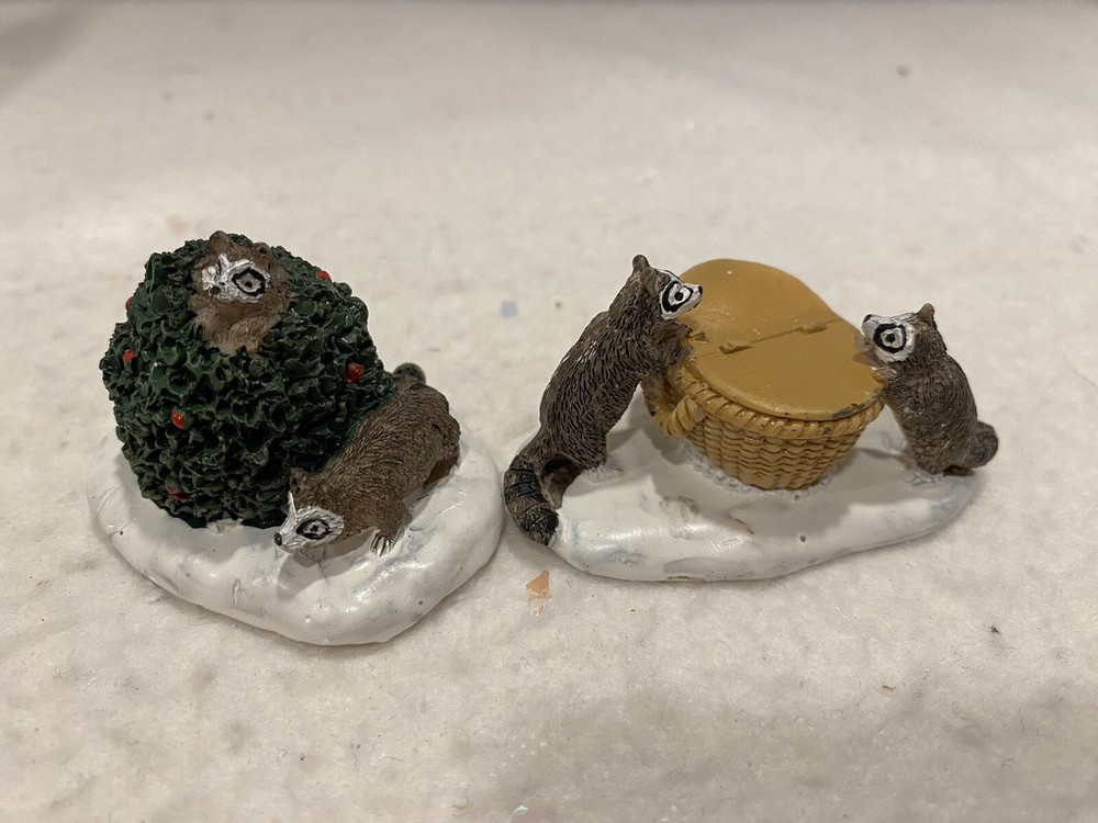 Items are in good preowned condition, please see pictures for full description. LEMAX CHRISTMAS VILLAGE 2 Pieces "RACCOON SET" "#52357" 52357 Bin TT